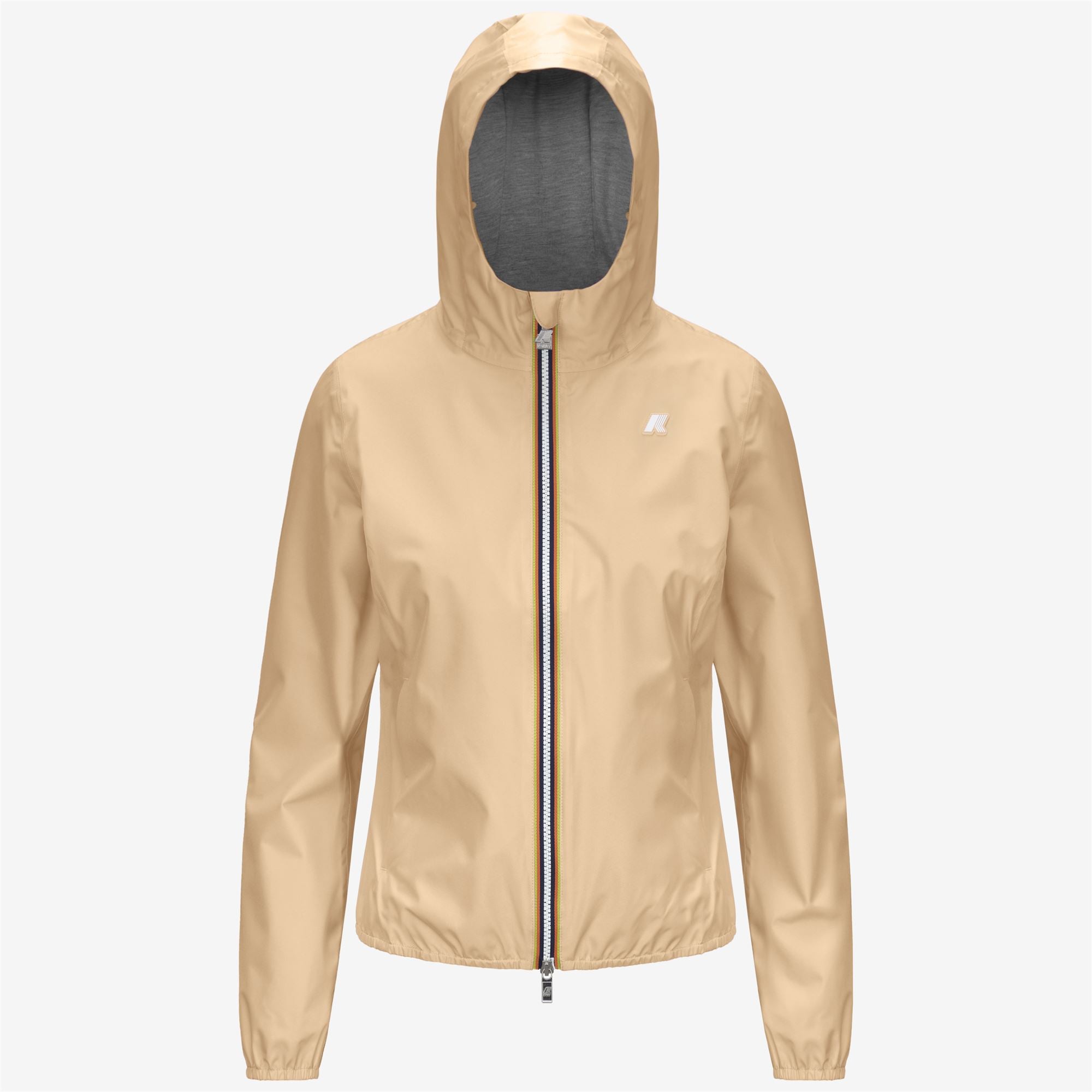 Chaqueta corta impermeable naranja beige para mujer con capucha ajustable main