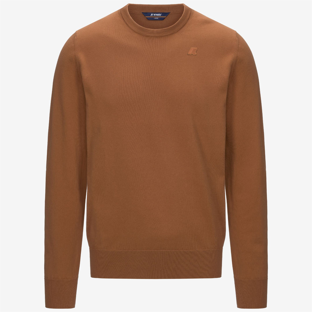 Suéter de cuello redondo de algodón para hombre en marrón y naranja main