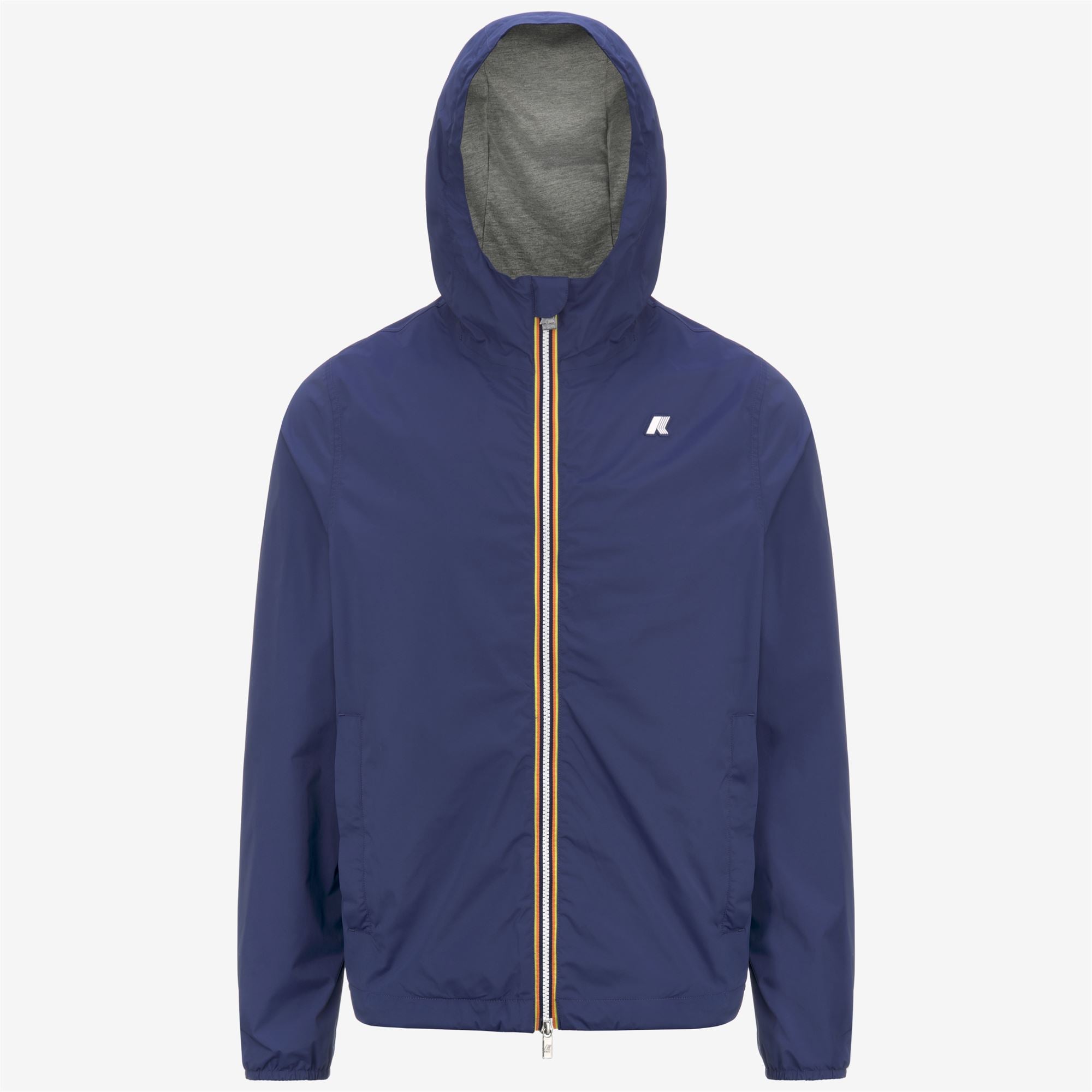 Jack is a men's slim-fit jacket, made from weather-resistant stretch nylon with soft grey melange cotton jersey lining on the front and back only, which provides superior comfort, excellent protection and a comfortable feel on the skin. The interior is finished with meticulous attention to detail: there are heat-taped seams and the iconic multicoloured K-Way tape at the waist for a distinctive signature touch.