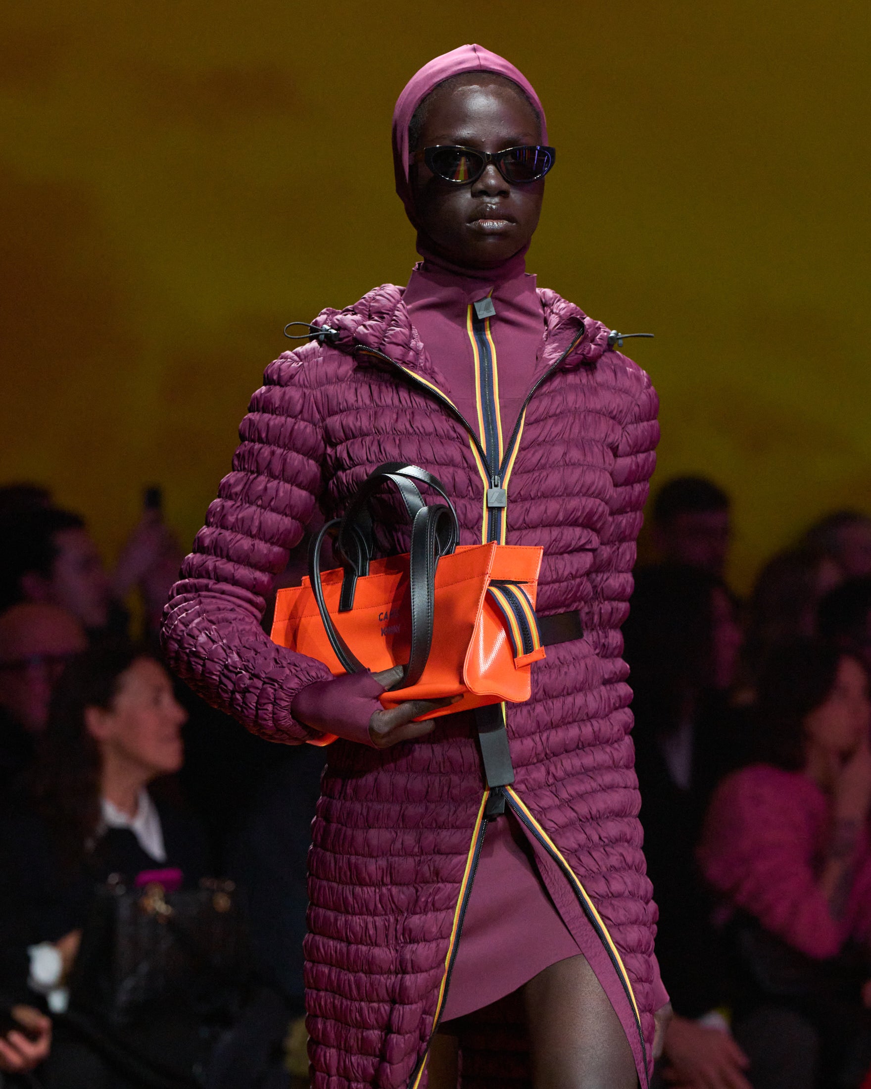El desfile explora la idea de evolución, partiendo de Le Vrai y redefiniéndolo con líneas modernas y funcionales. Las prendas exteriores de caparazón ganan en calidez con las capas de jersey de lana, mientras que los colores característicos y las capas atrevidas dan forma a cada look. La icónica cremallera tricolor destaca como un detalle llamativo, y los amplios bolsillos realzan la practicidad con estilo.
