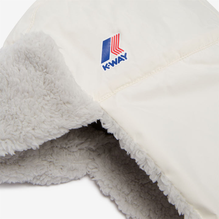 Gorra unisex de nylon Ripstop acolchado, repelente al agua, transpirable y a prueba de viento, forrada en piel ecológica en la visera y las orejeras. Ajustada con una hebilla debajo de la barbilla. Logo de K-Way impreso. Etiqueta QR en el interior.