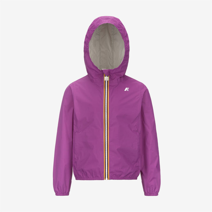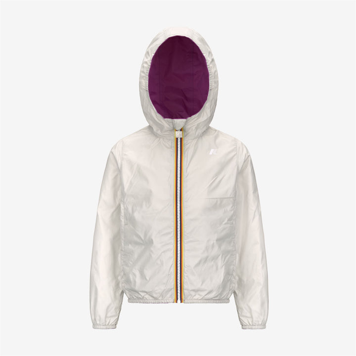 Chaqueta reversible y empaquetable para niñas en beige y violeta