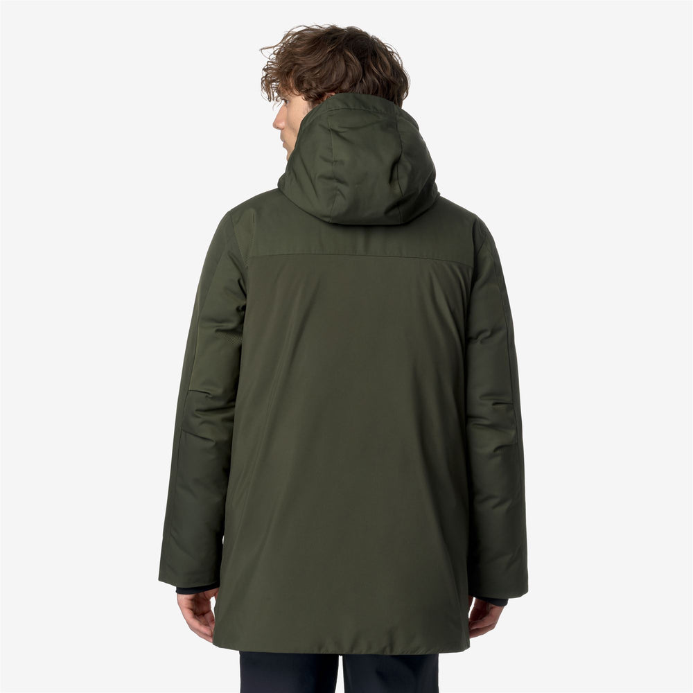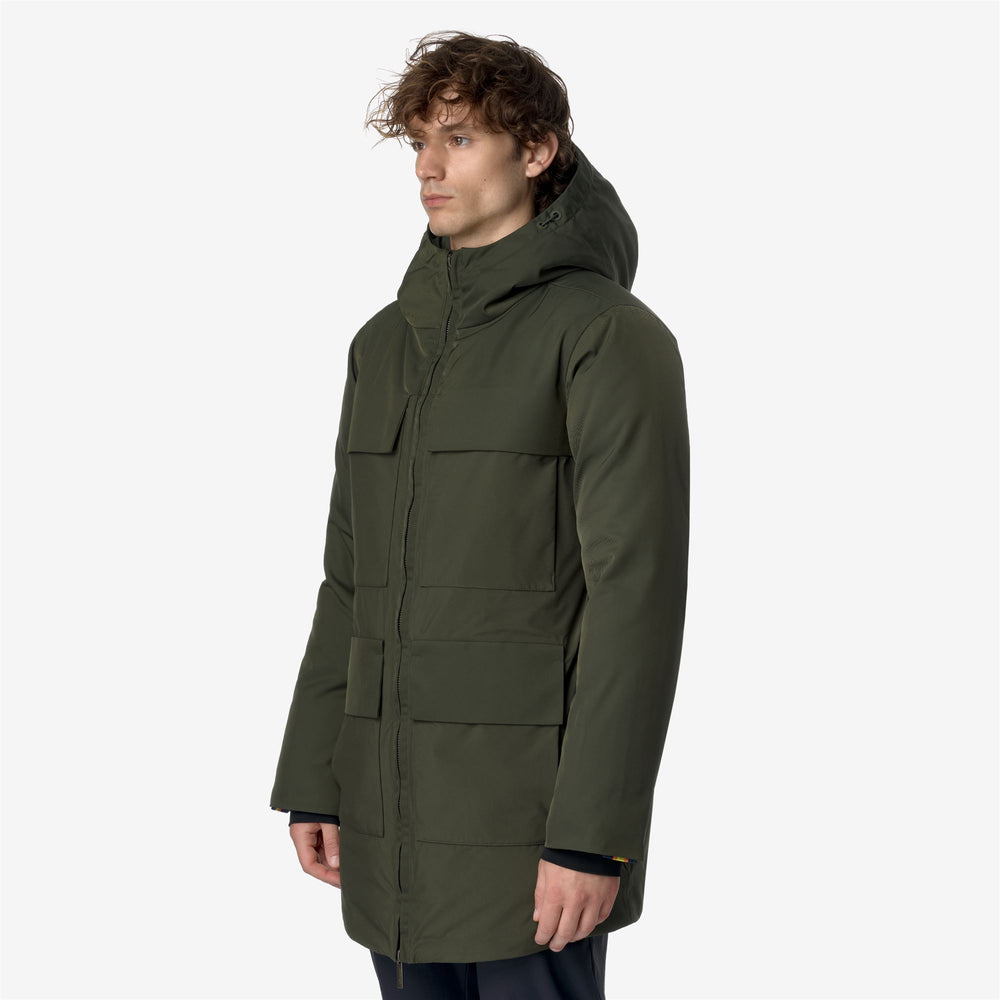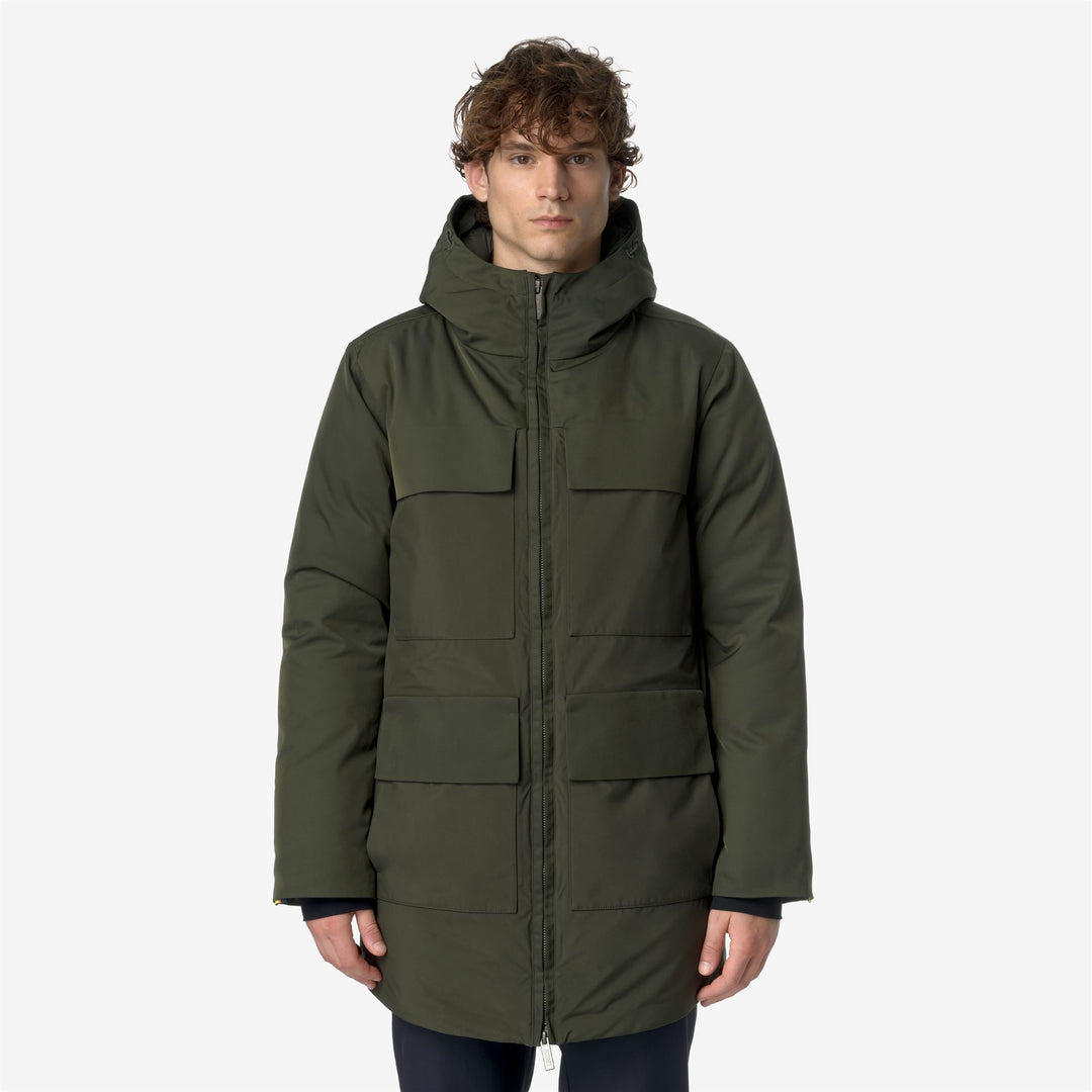 Hodel es una chaqueta de longitud media para hombres que es ideal para el invierno debido a su aspecto limpio, listo para la ciudad, con detalles funcionales y sin logos en la parte frontal. Esta chaqueta, con un ajuste regular y cierre de cremallera, presenta una capa exterior de nylon impermeable combinada con inserts de tela de patrón sarga y un relleno de plumón de ganso Molina que proporciona un grado de calidez medio. El estilo cuenta con una capucha ajustable envolvente, 4 bolsillos con solapa y botón a presión, y el detalle de la cinta K-Way en el puño.