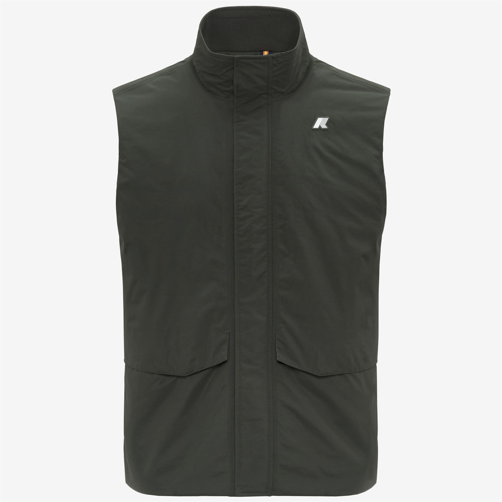 Chaleco impermeable de plumón verde negruzco para hombre con bolsillos utilitarios main
