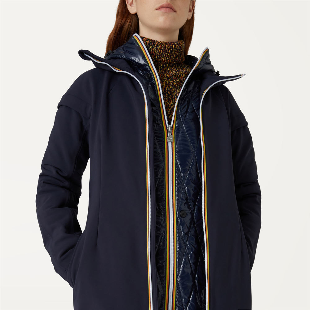 Chaqueta larga impermeable azul marino para mujer con forro extraíble main