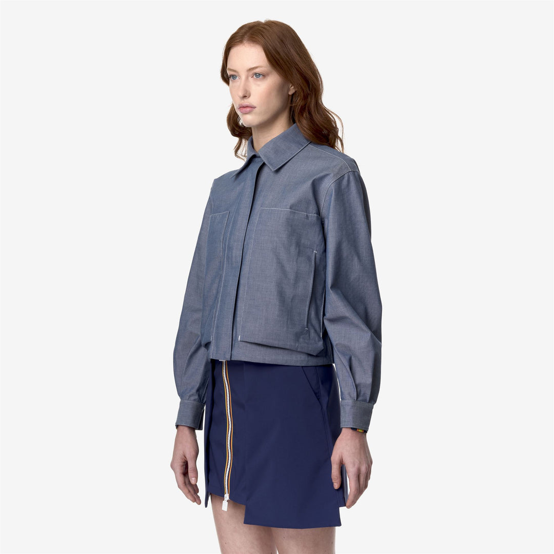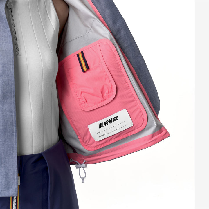 Isarthe es una chaqueta corta para mujeres con un diseño cuadrado y holgado, con mangas raglán, ideal para las medias estaciones. Está confeccionada con un lienzo de algodón chambray Amiable de 3 capas, que proporciona capacidades a prueba de viento y agua hasta 10000 columnas de agua gracias a la membrana impermeable. La chaqueta se caracteriza por su estilo utilitario: construcción con cierre completo, cuello de camisa, dobladillo inferior ajustable con cordón, 2 grandes bolsillos frontales integrados y numerosos bolsillos internos. Amiable es el proyecto K-Way que combina funcionalidad y respeto por el medio ambiente. Esta prenda está hecha de nylon 100% reciclado y reciclable y se termina con costuras termoselladas a prueba de viento, también hechas de materiales reciclados.