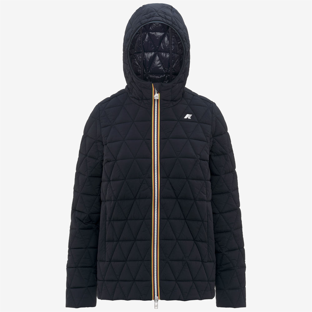 Chaqueta acolchada corta azul para mujer con capucha y relleno ecológico main