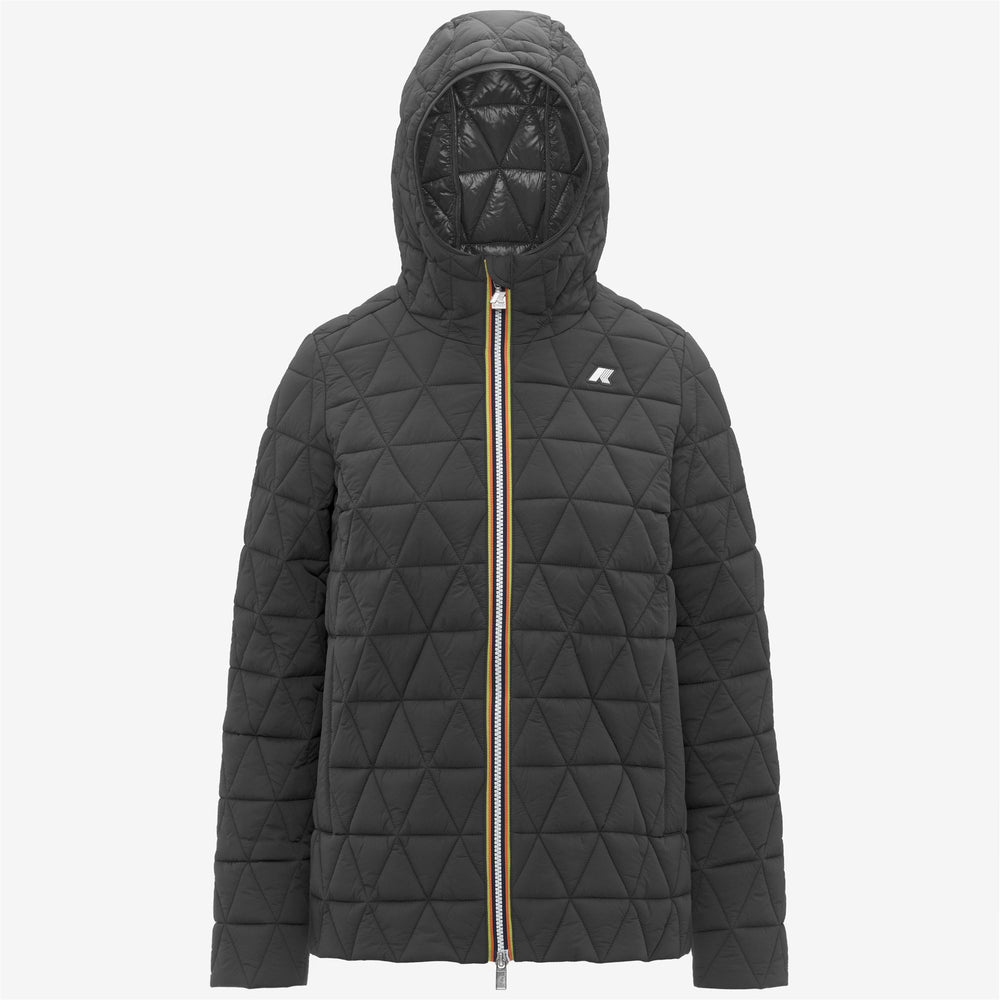 Chaqueta corta acolchada gris para mujer con capucha y relleno Primaloft main