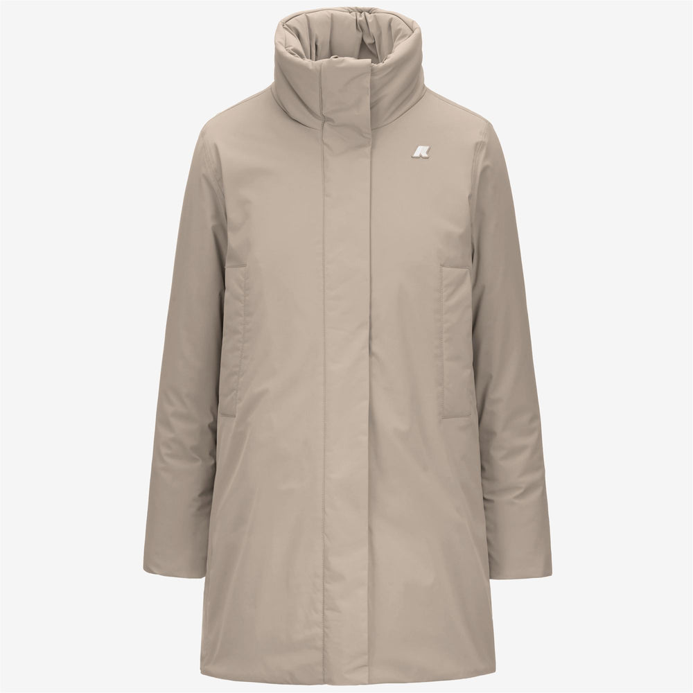 Chaqueta elegante beige de longitud media con capucha para mujer main