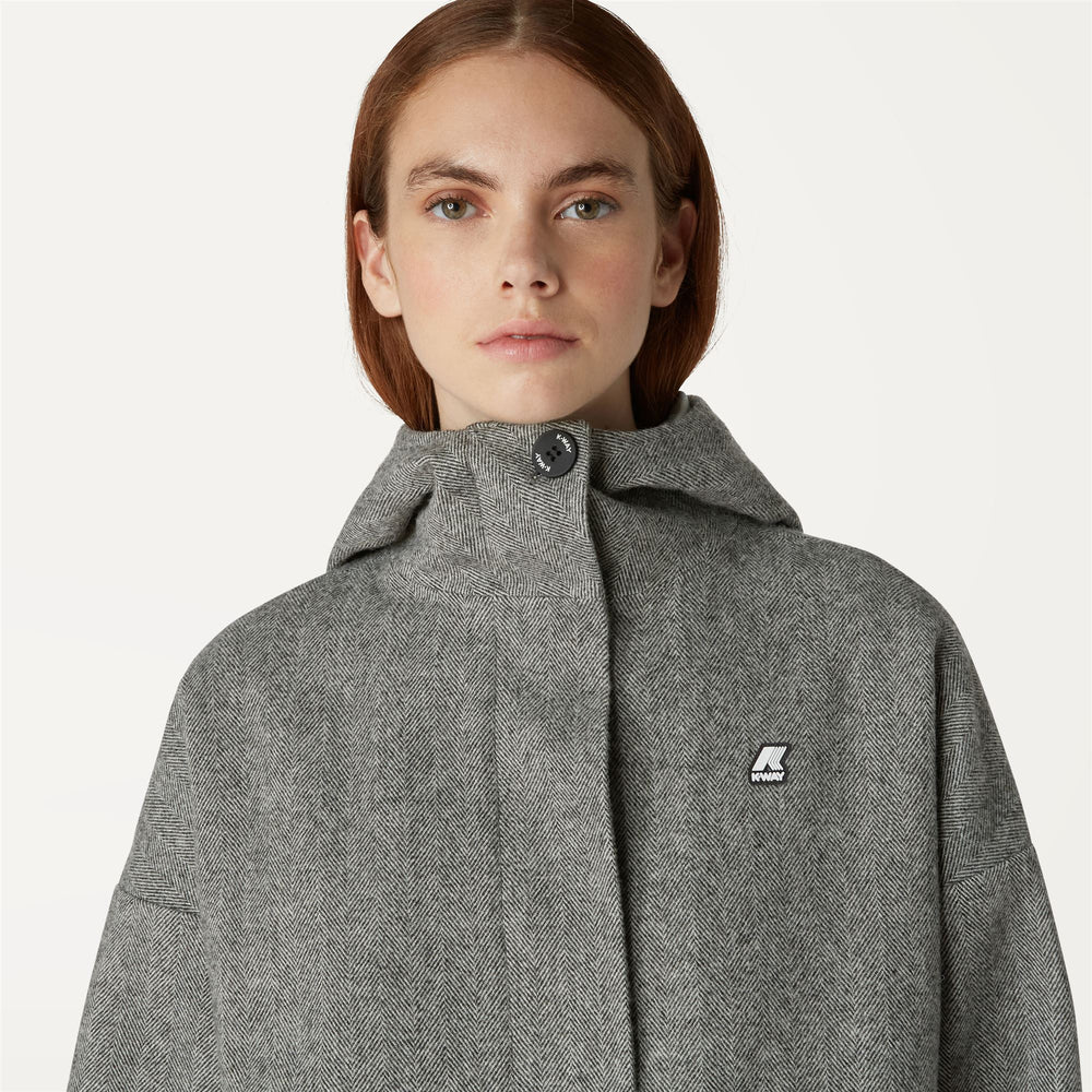 Presumi de una silueta clásica de capullo, el abrigo Nousiel para mujeres combina influencias de herencia con un giro innovador. Confeccionado en lana acogedora con un patrón en blanco y negro, este estilo se caracteriza por un recubrimiento interno plateado y costuras selladas térmicamente adornadas con nuestra cinta icónica.