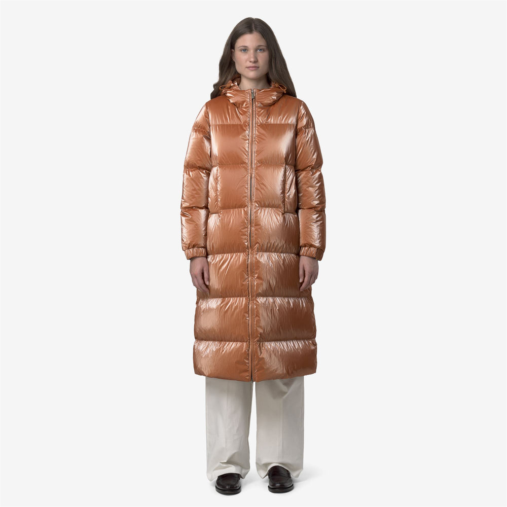 Chaqueta acolchada larga naranja para mujer con relleno de plumón main