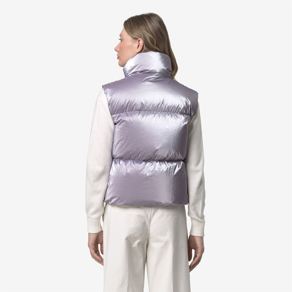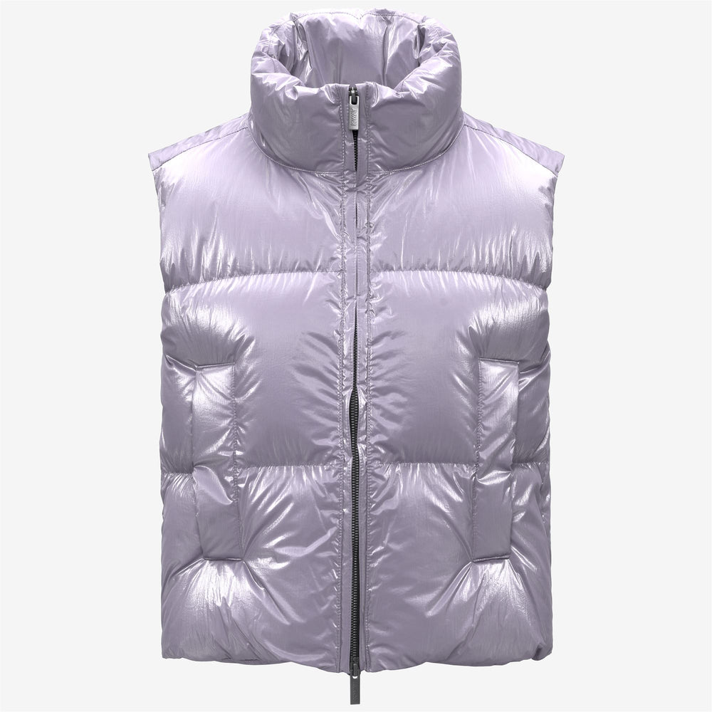 Chaleco acolchado elegante para mujer violeta con aislamiento de plumón natural. main