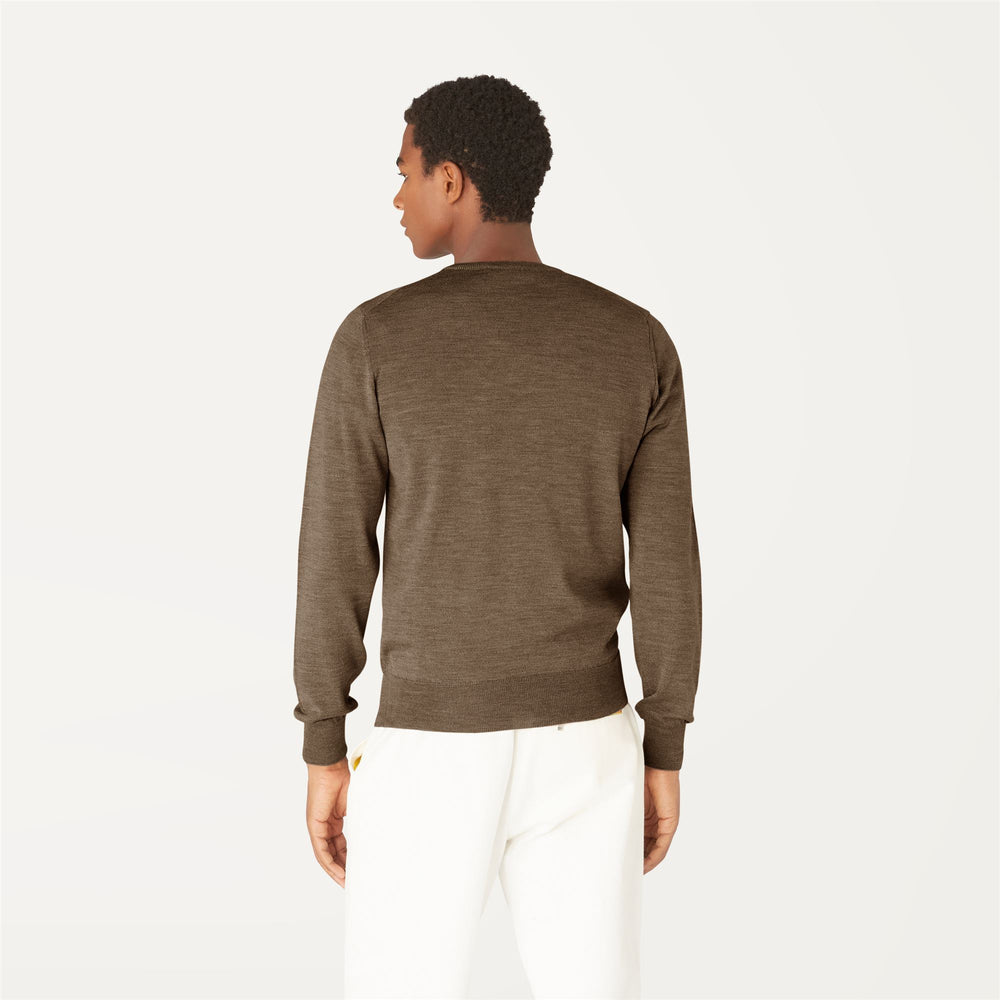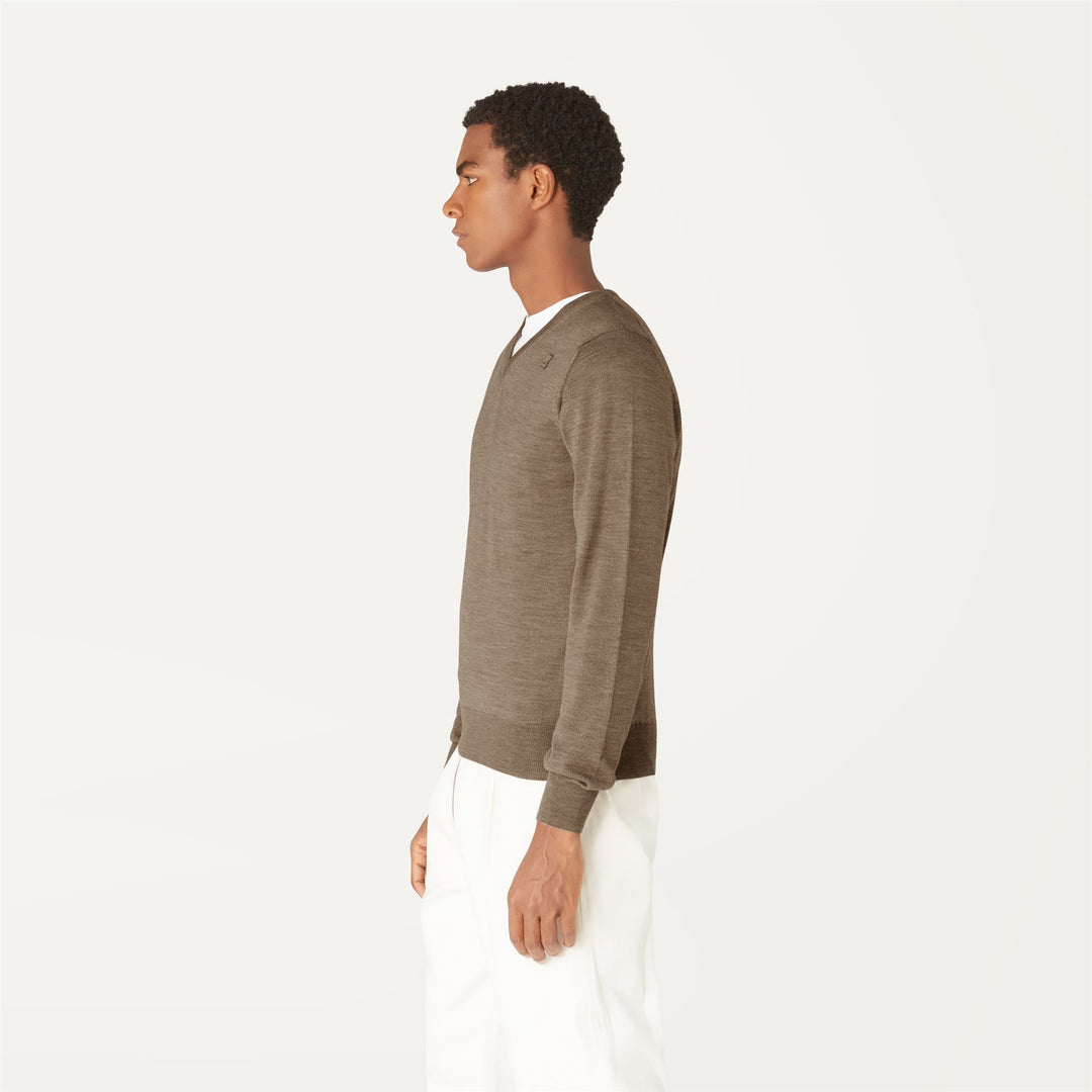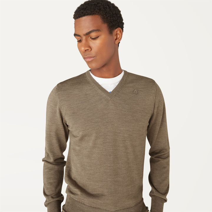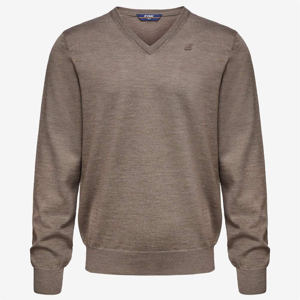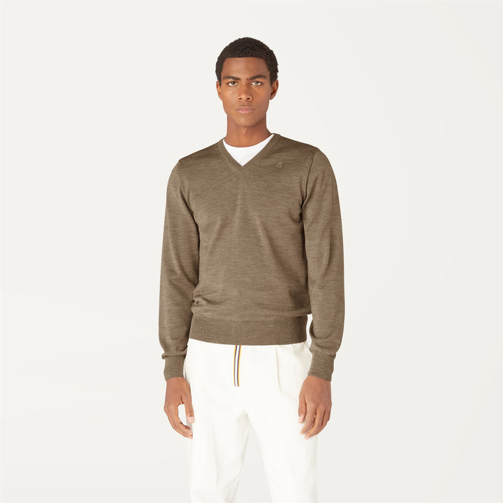 Suéter de punto de merino marrón beige para hombre con cuello en V main