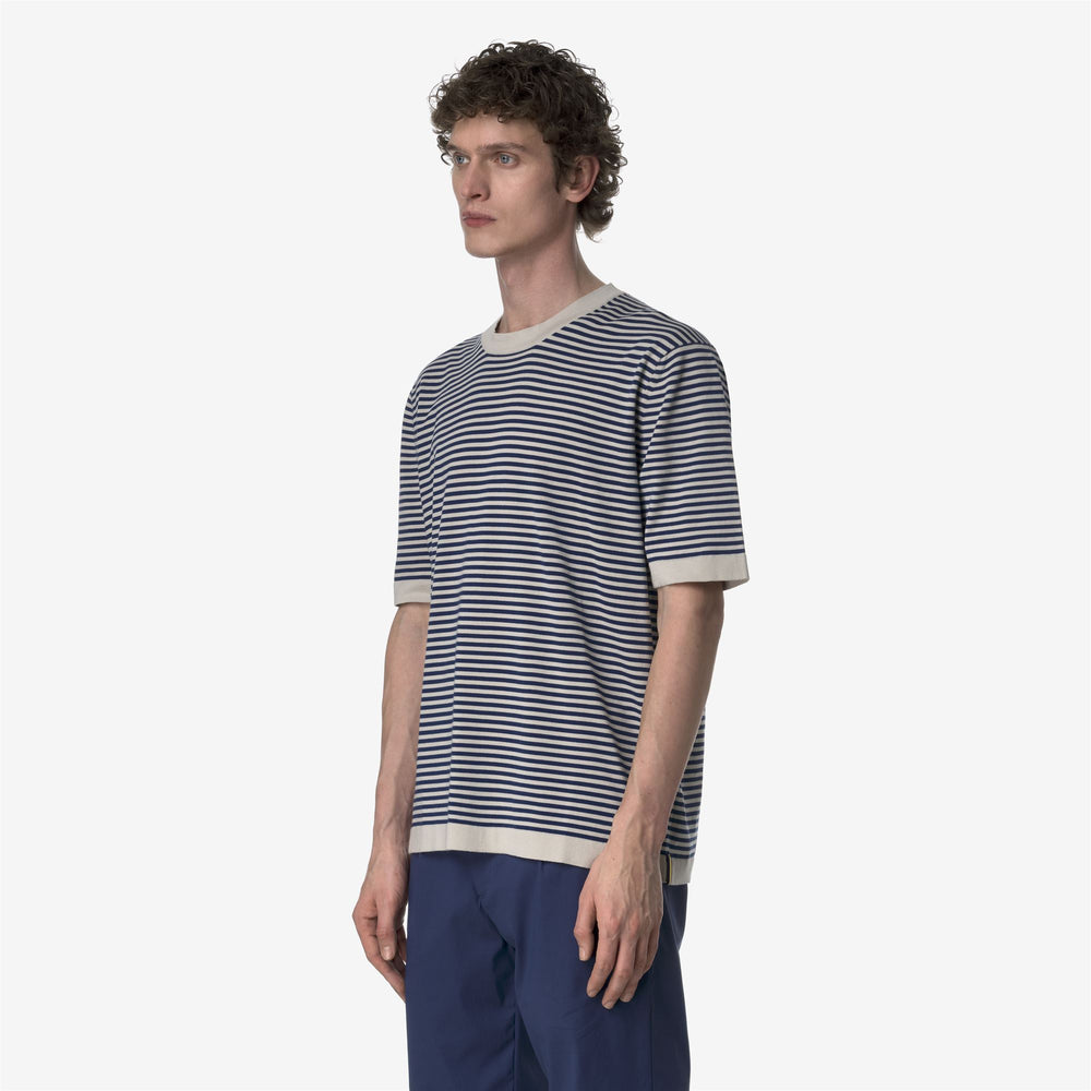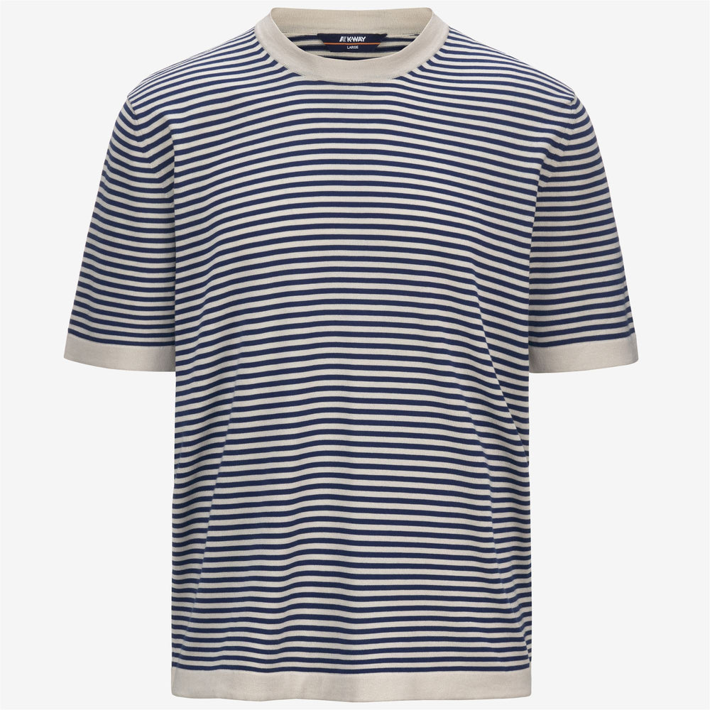 Combe es un suéter de cuello redondo de manga corta para hombres con una forma clásica y de ajuste regular, hecho de puro algodón egipcio con un hilo suave, liso y anti-pilling. Esta prenda de punto ligera presenta un patrón de rayas atemporal y dobladillos de un solo pliegue.