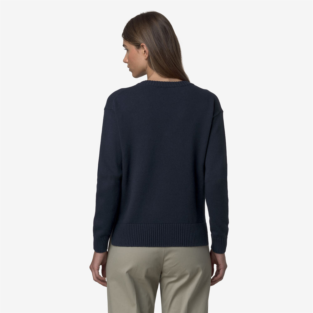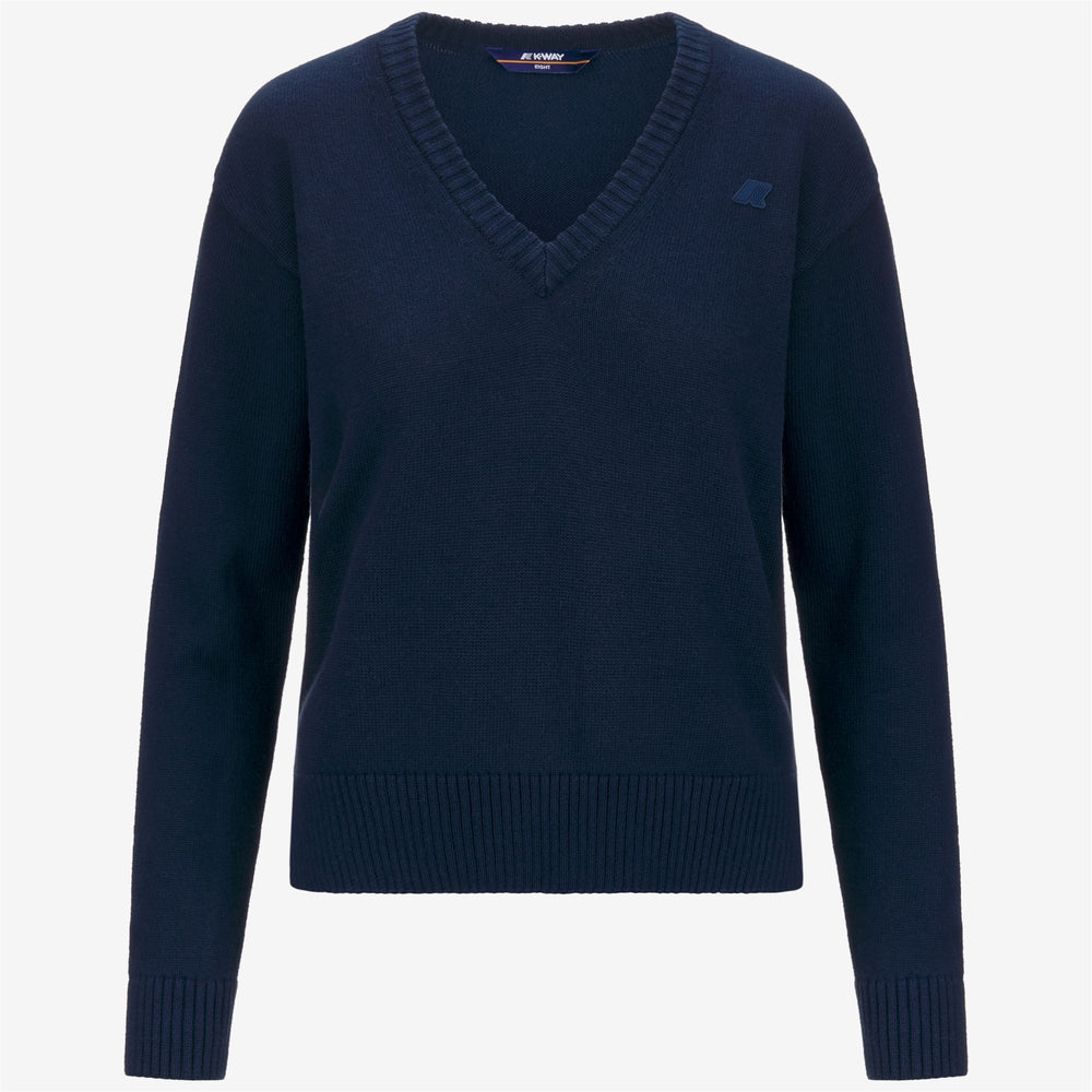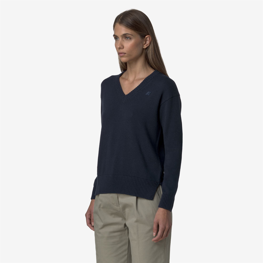 Suéter azul de cachemira y algodón para mujer con cuello en V y aberturas laterales main