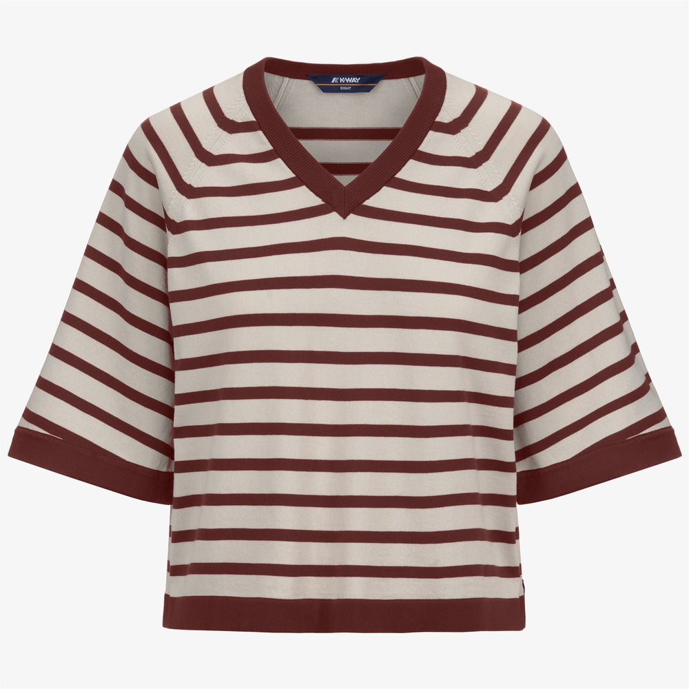 Marol es un suéter de manga kimono para mujer con una silueta clásica de corte regular, hecho de 100% algodón egipcio con un hilo suave, liso y anti-pilling. Esta prenda de punto ligera presenta un diseño atemporal de escote en V con mangas de tres cuartos y un patrón a rayas, modernizado por un corte femenino ligeramente recortado.