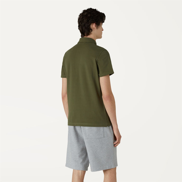 Camisa polo de manga corta para hombres, ajustada, en tela de piqué elástica de 95% algodón y 5% elastano. El cuello presenta una tira a prueba de sudor. Botones de nácar cosidos en la microcinta de K-Way. La camisa también cuenta con dos pequeñas aberturas laterales para un ajuste más cómodo. Logo de K-Way bordado en la parte frontal. Etiqueta QR y etiquetas impresas en el interior.