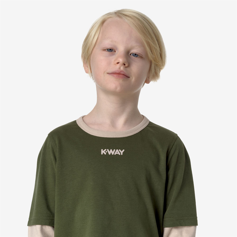 Camiseta de algodón verde ciprés y rosa para niña para ciudad main