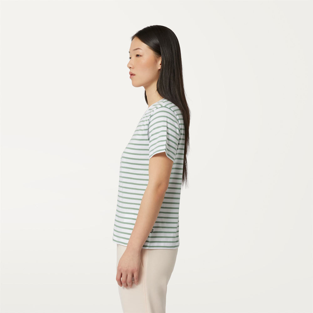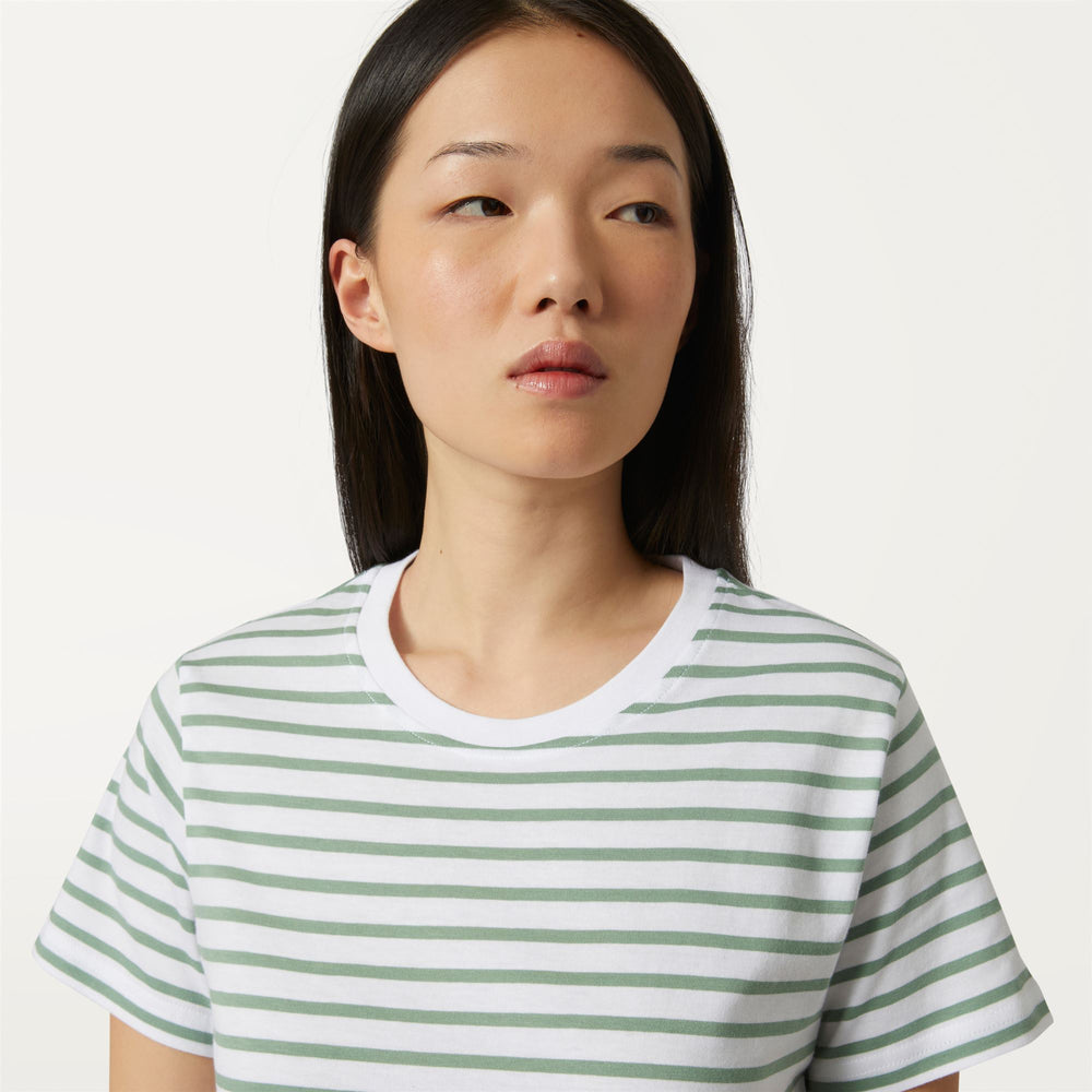 La camiseta Amalia Stripes para mujeres está hecha de suave jersey de algodón con un estampado de rayas colorido. Este estilo de corte regular cuenta con un cuello redondo y mangas cortas: un básico del vestuario diario.
