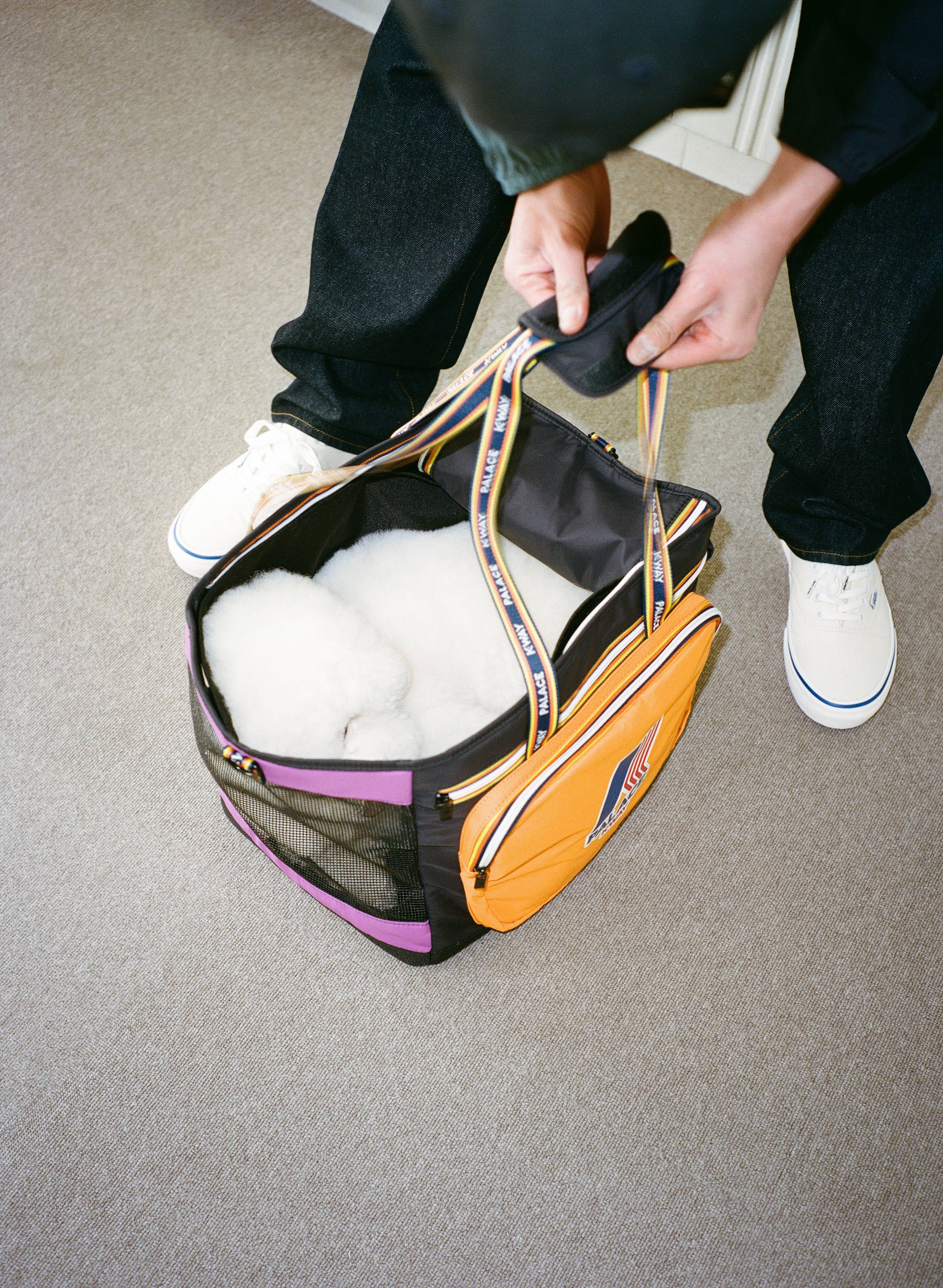 La capsule include anche la giacca coordinata Le Vrai Horatio per il tuo amico a quattro zampe, un trasportino, una coperta pieghevole per cani nel patchwork dai toni caldi e un collare e guinzaglio a righe, entrambi brandizzati con loghi K-Way e Palace. Una collezione pensata per trasformare ogni uscita con il tuo cane in un'affermazione di stile perfettamente coordinata.