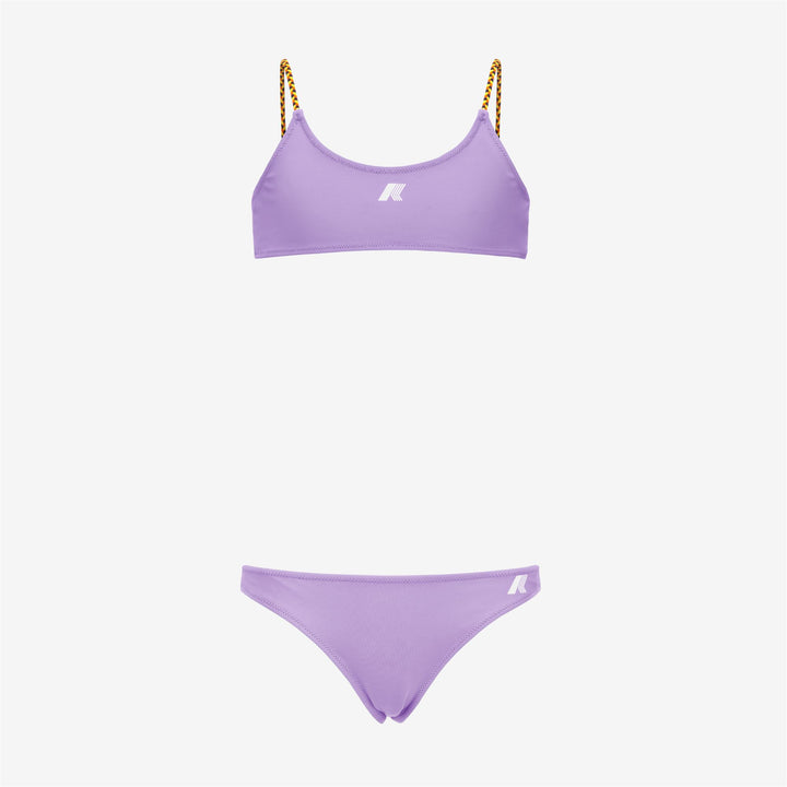 Scarlett è un bikini da bambina dalla linea essenziale e sportiva, composto da un top a fascia con bretelline intrecciate nei colori K-Way e uno slip con sgambatura media. Il modello è realizzato in tessuto tecnico ad asciugatura rapida e si distingue per il design double face con colori a contrasto, indossabile coordinato o spezzato.