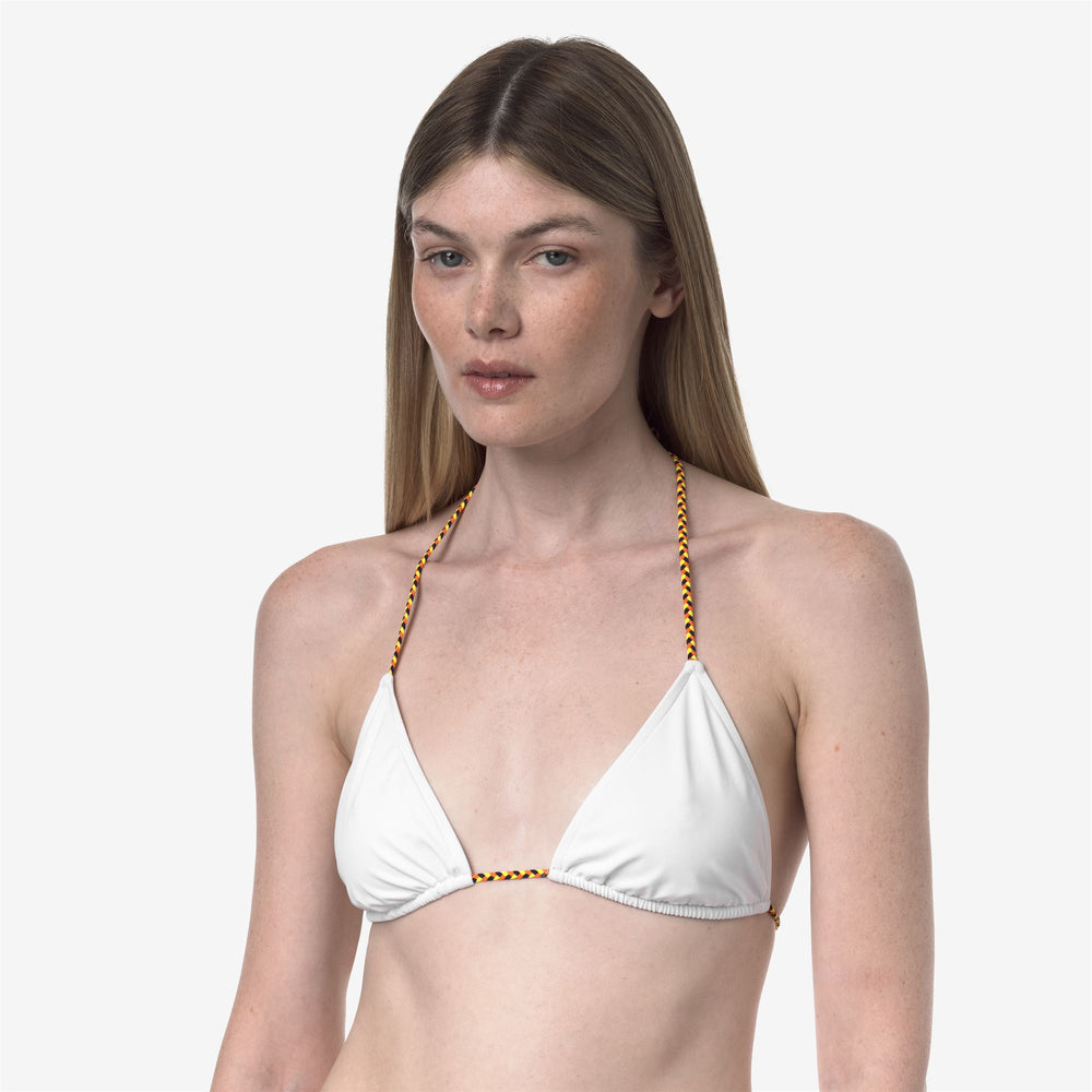 Etre è un bikini da donna dalla linea femminile che esalta la silhouette, composto da un reggiseno a triangolo e uno slip con laccetti intrecciati nei colori iconici del brand. Il modello è realizzato in tessuto tecnico ad asciugatura rapida con fodera interna e logo bianco stampato sul fianco.