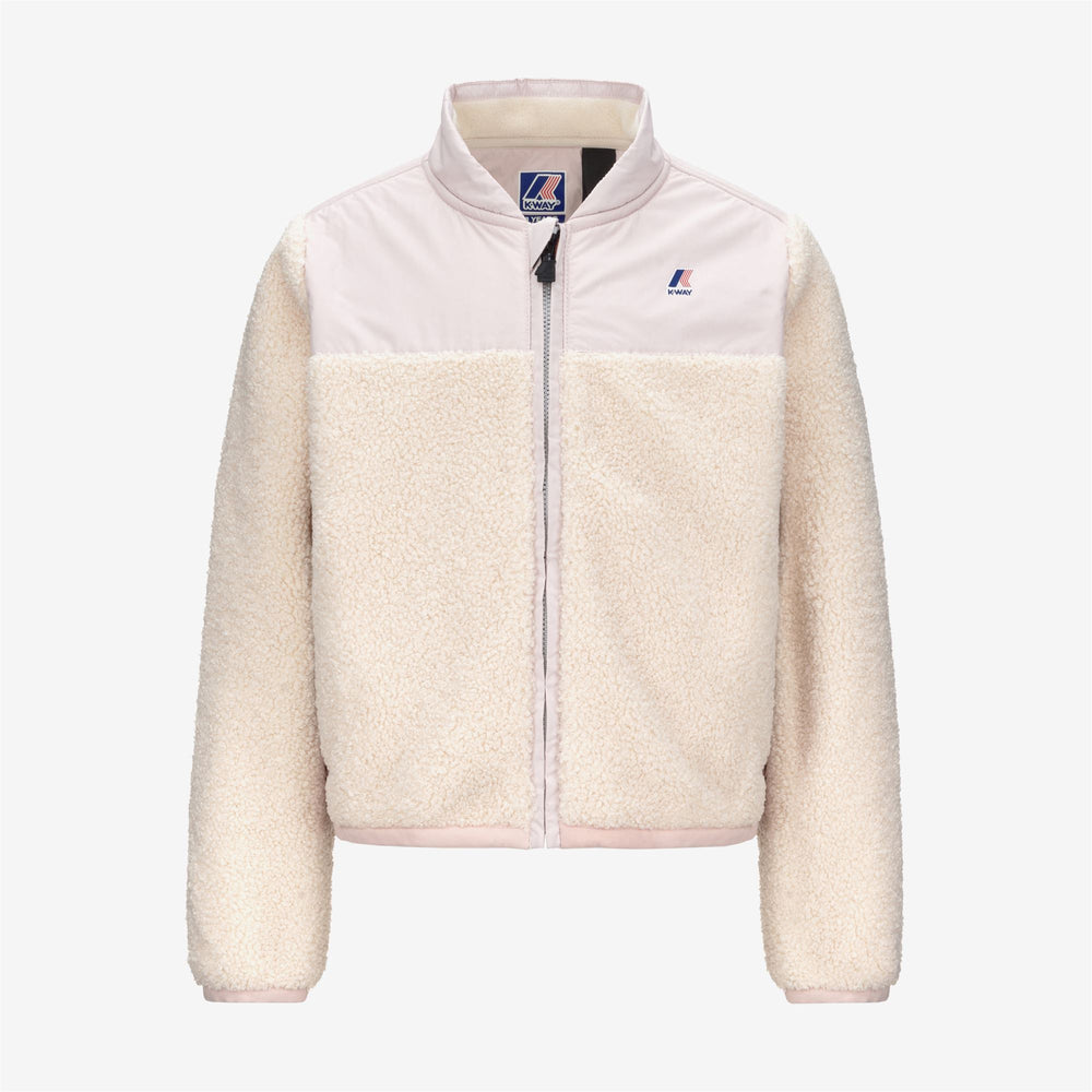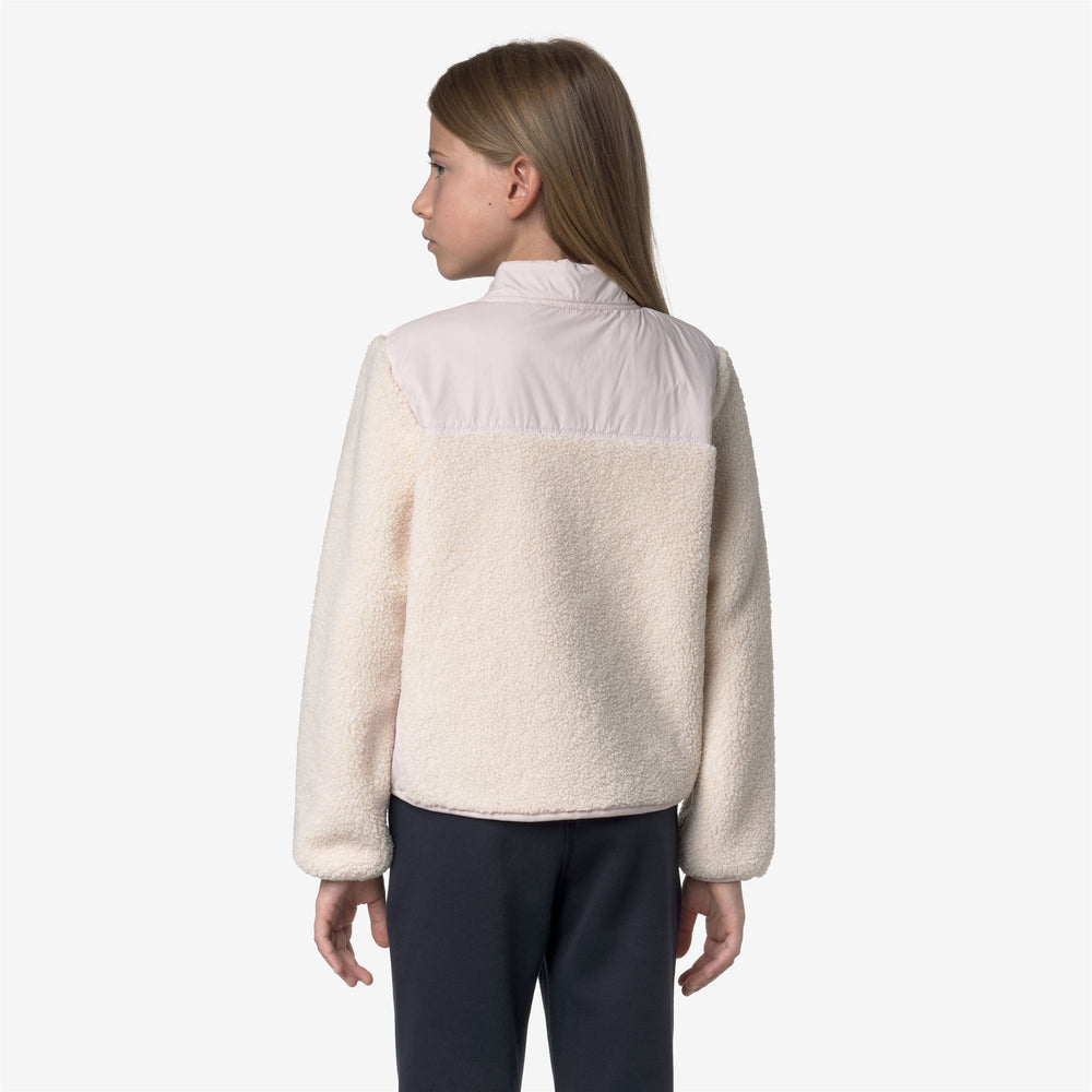 Bernardine è una giacca corta da bambina, ideale per le stagioni intermedie e i primi freddi. Realizzata in tessuto effetto sherpa, caldo e morbido, ha inserti in nylon micro ripstop, 100% riciclato, ancora più traspirante e resistente all’acqua.
