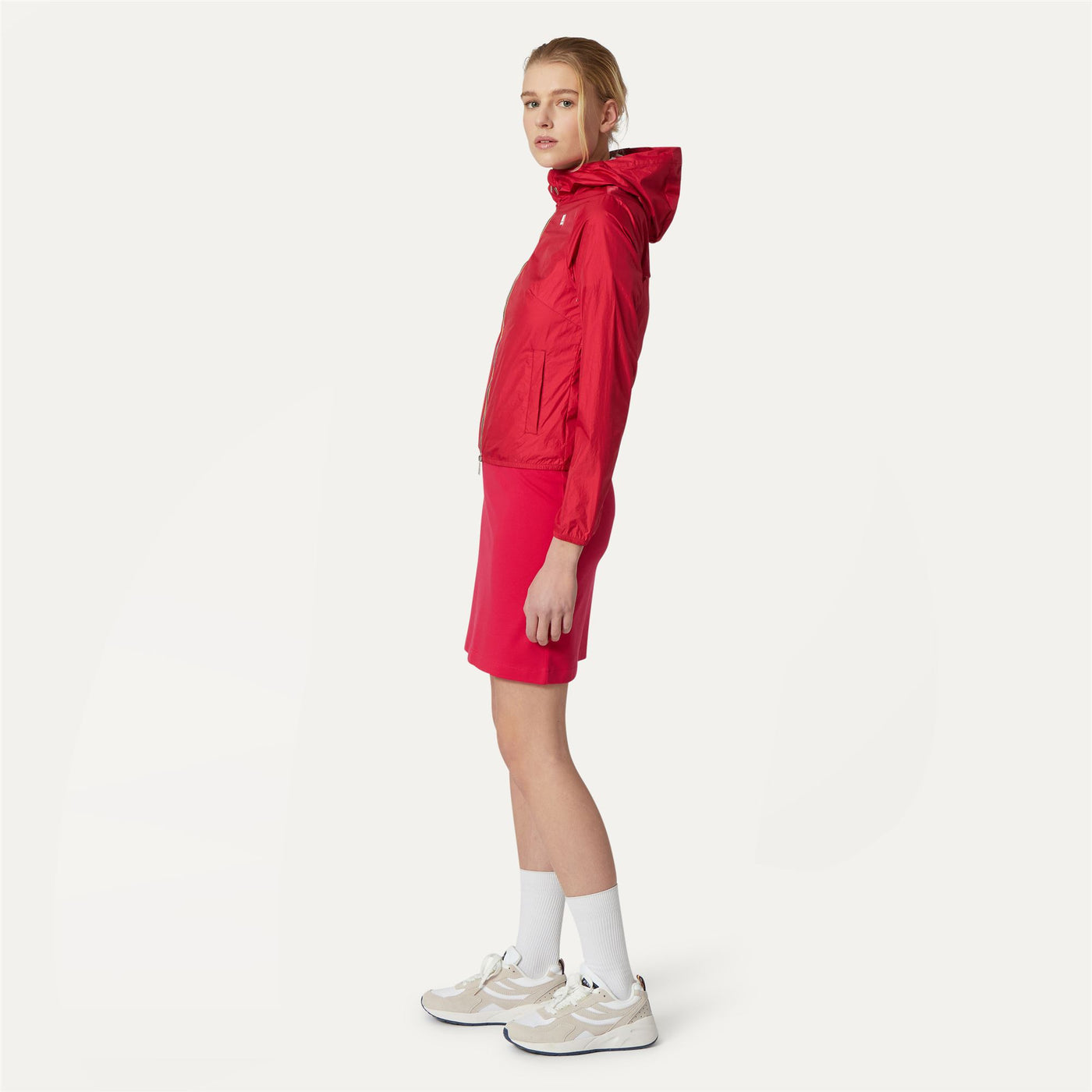 Lil è la giacca corta da donna con vestibilità slim realizzata in nylon iridescente dall'effetto mosso con interno metallizzato cangiante. Il cappuccio con coulisse e i polsini elastici sono dettagli funzionali che rendono il capo pratico e versatile durante l'attività all'aria aperta.