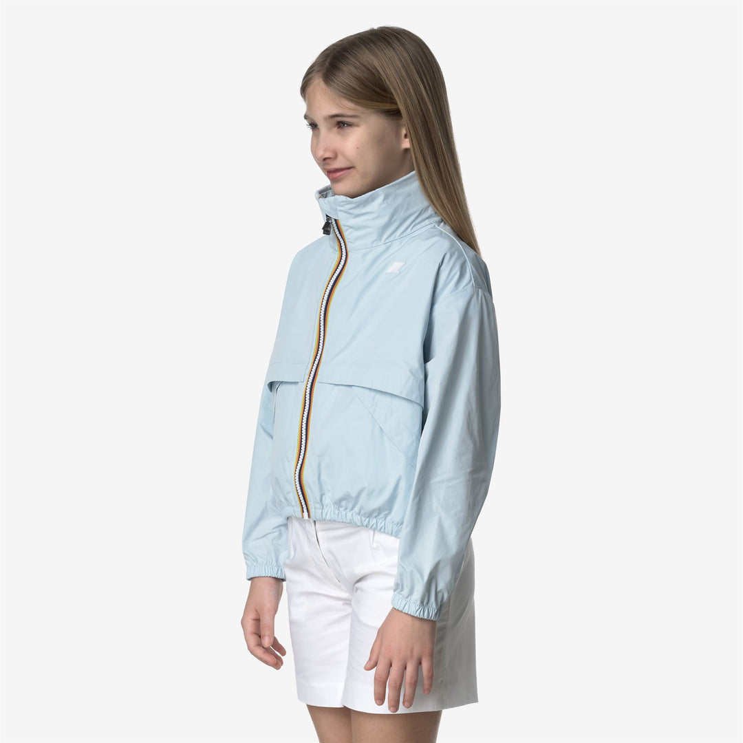 Aubette è una giacca corta da bambina, con un design che omaggia lo spirito sportivo del brand grazie al tessuto dalla finitura liscia e gommata e al taglio crop con dettagli voluminosi come maxi tasche e maxi flap sul fronte. La giacca presenta chiusura con zip nei colori K-Way, collo alto, polsi elastici e vita regolabile con coulisse.