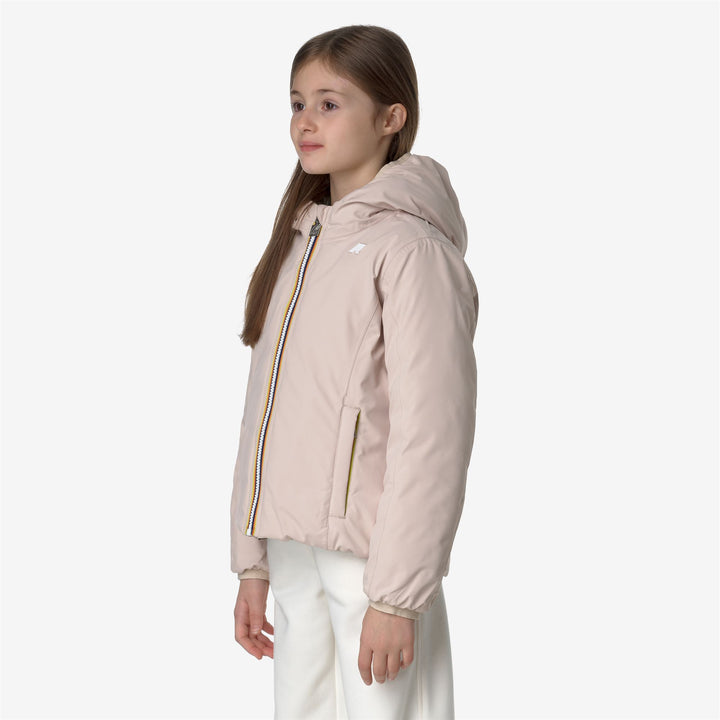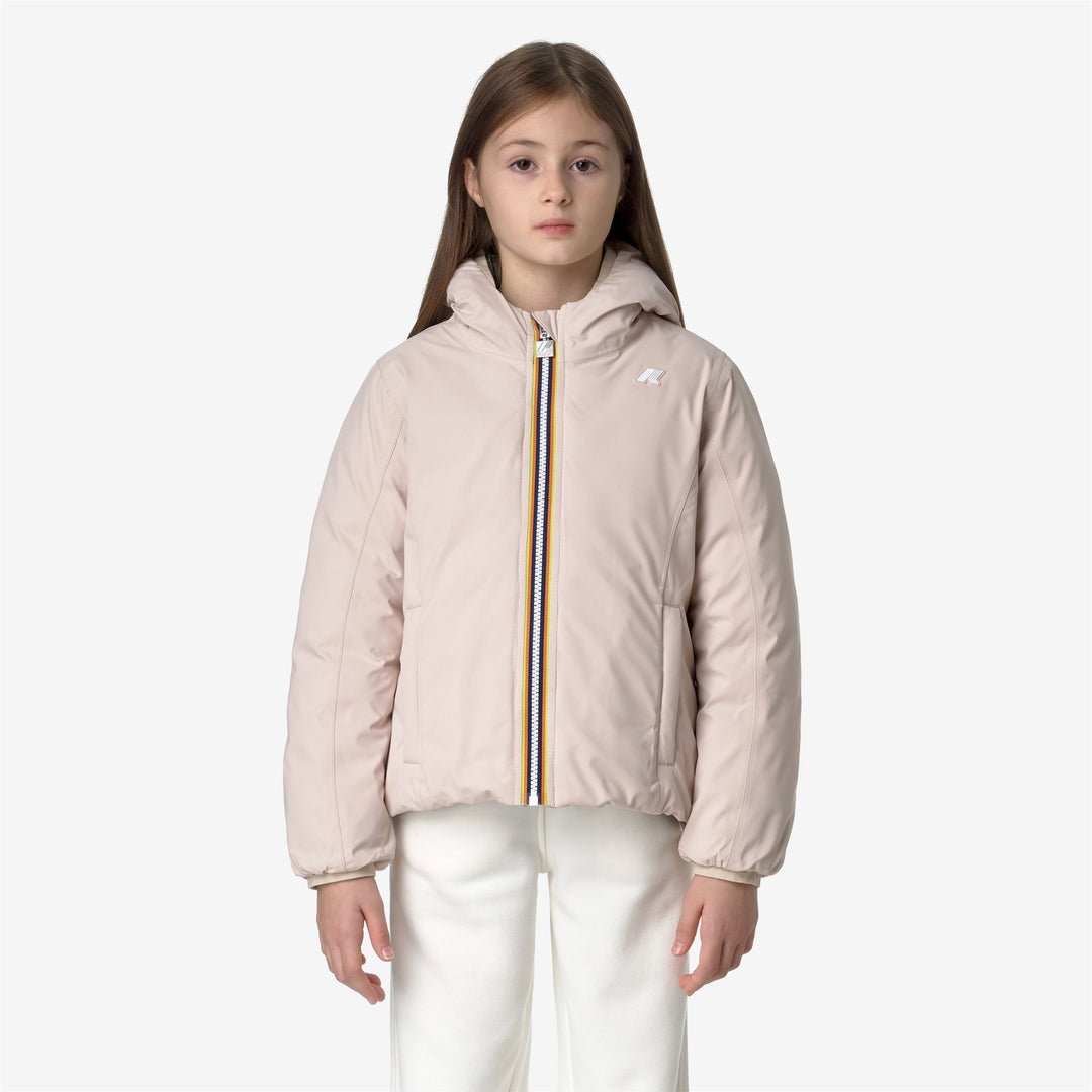 Giacca corta da bambina Lily pensata per il clima più rigido e attenta all'ambiente perchè imbottita in piuma. Il modello si caratterizza per il design reversibile con un lato in tessuto tecnico liscio e l'altro in nylon trapuntato dal colore a contrasto. Il cappuccio, le tasche, la chiusura con zip e la flap antivento sono dettagli funzionali che proteggono dal freddo.