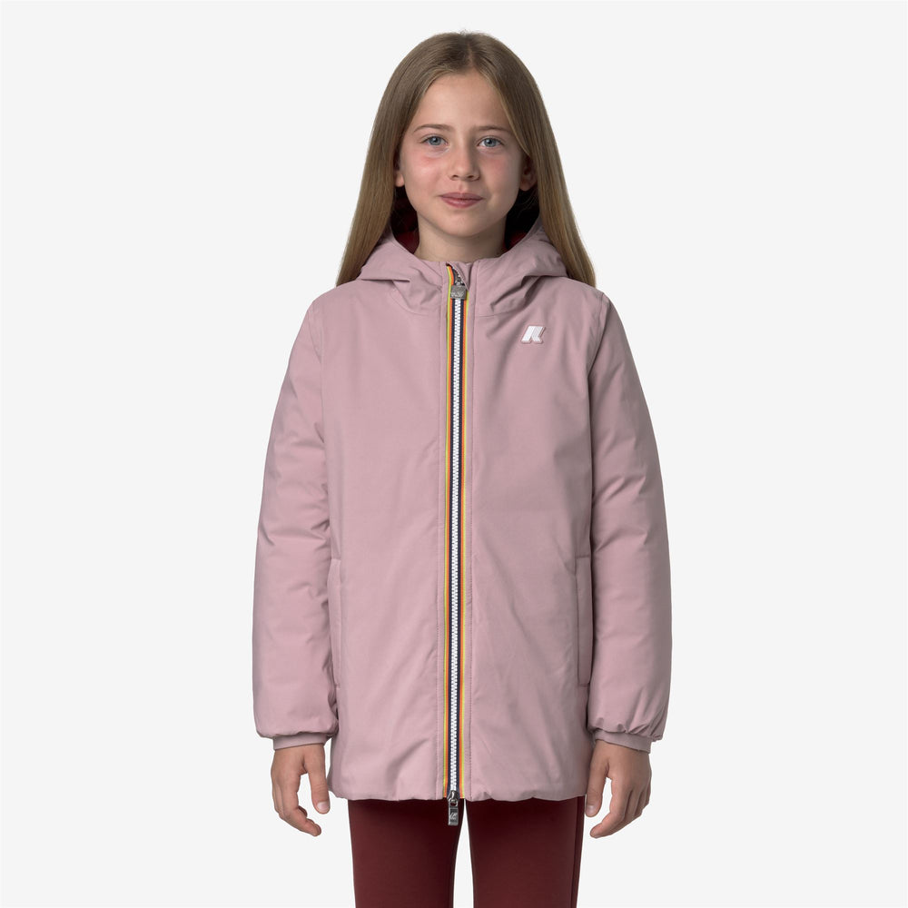 Sophie è la giacca di media lunghezza progettata per proteggere le bambine in condizioni di clima rigido. Il modello reversibile offre due opzioni di utilizzo perchè presenta un lato in tessuto tecnico liscio e l'altro in nylon trapuntato dal colore a contrasto. L'interno è imbottito in piuma