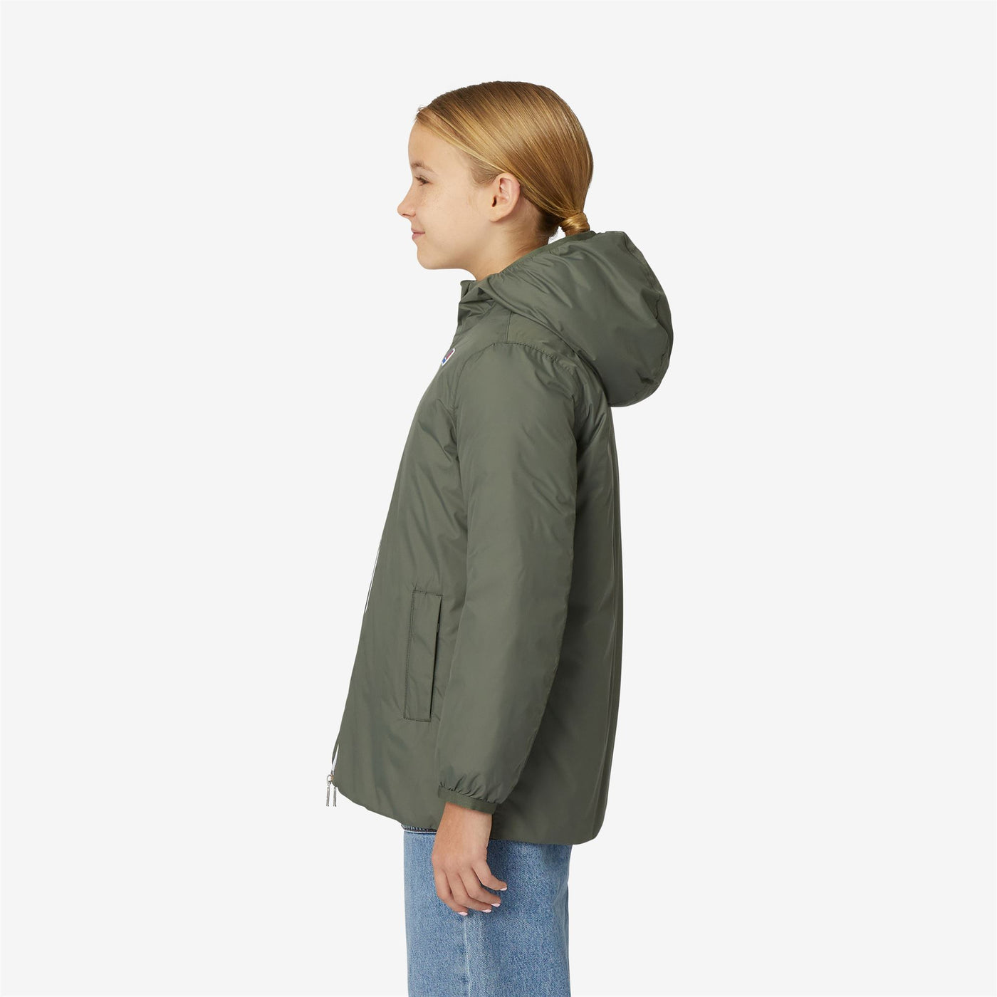 Sophie è la giacca da bambina con una costruzione accogliente, progettata per le condizioni di clima rigido. Il modello reversibile offre due opzioni di utilizzo perchè presenta un lato in tessuto tecnico liscio e l'altro in nylon trapuntato dal colore a contrasto. L'interno è imbottito in vera piuma che assicura un grado di calore alto.