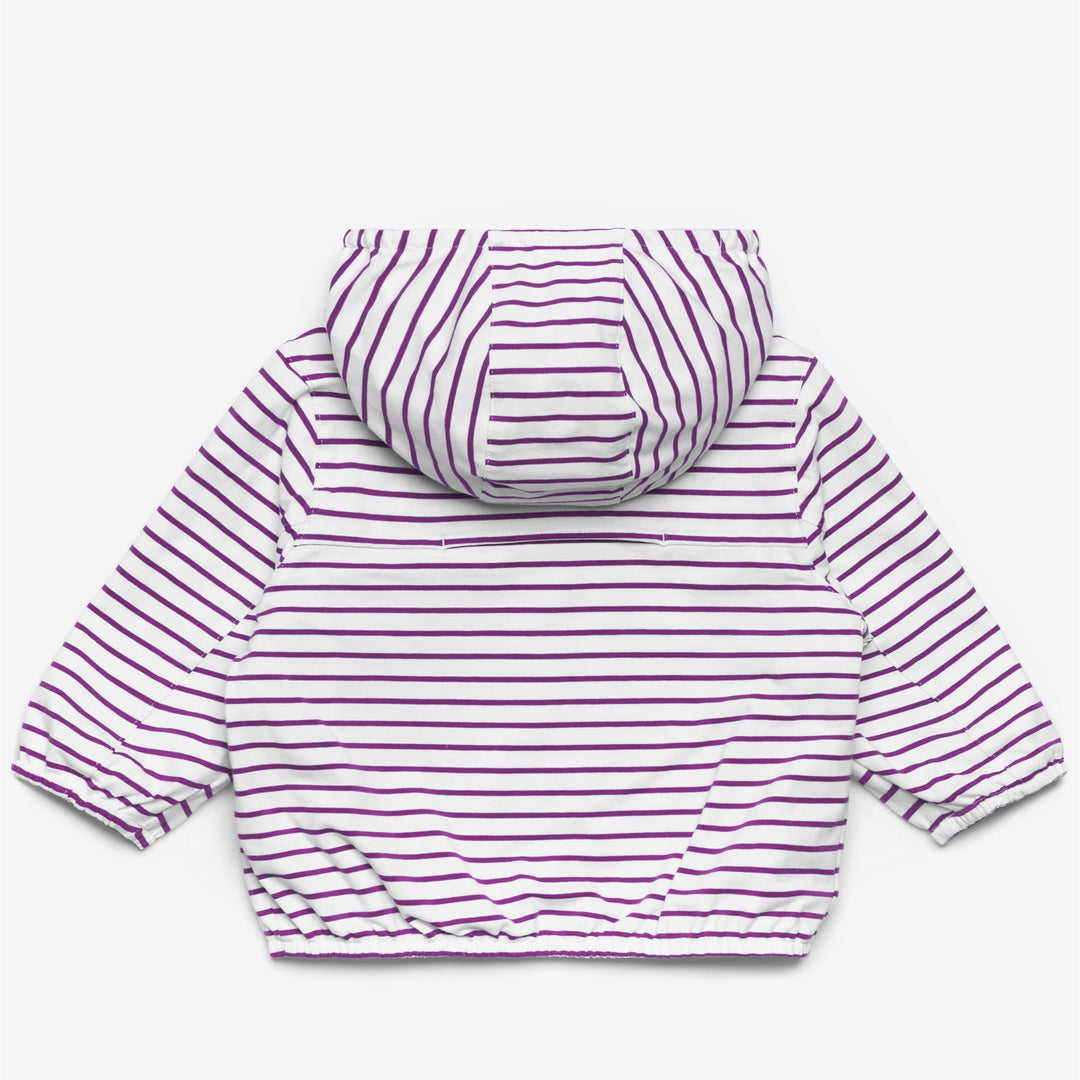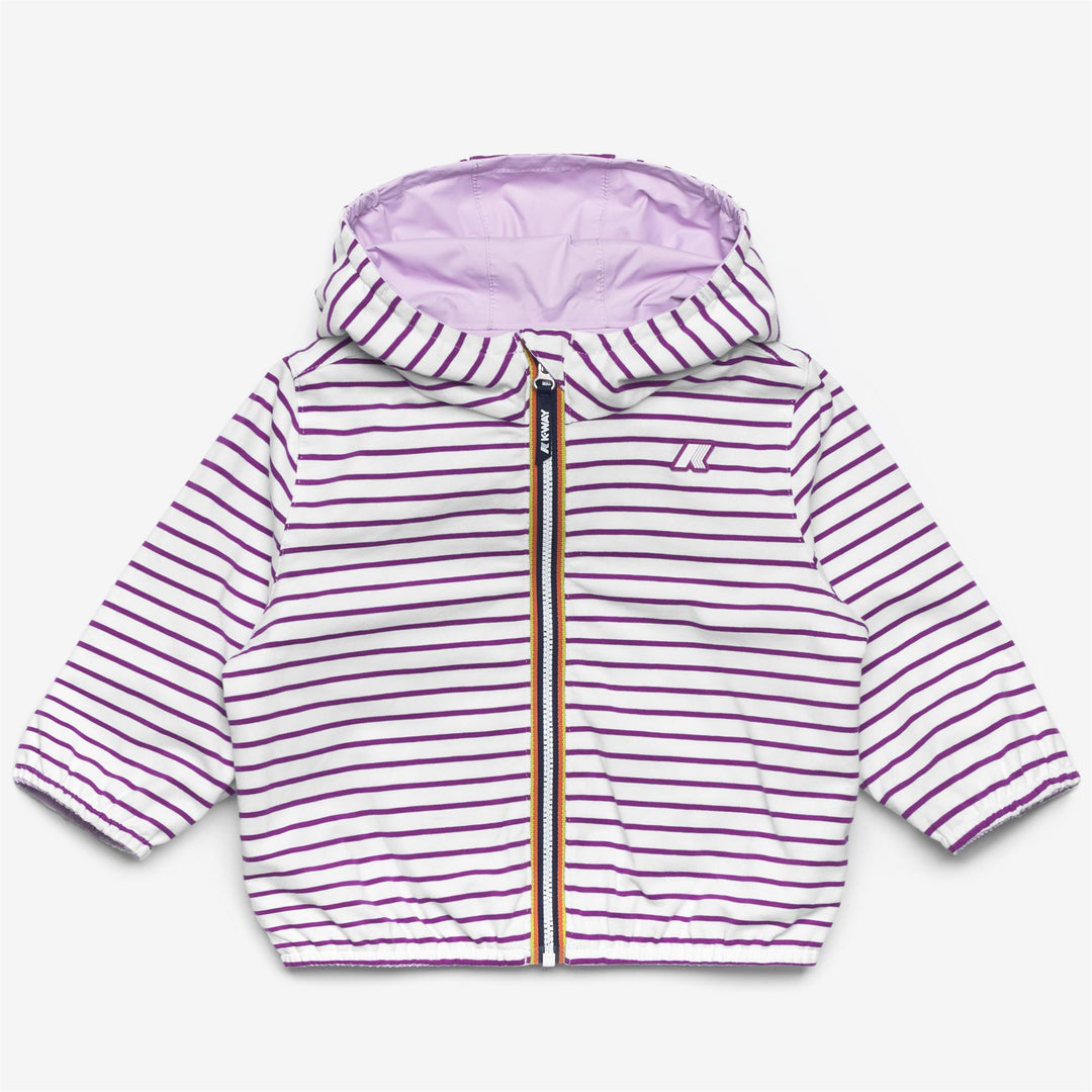 Jake è una giacca per neonati, dal design reversibile, con un lato in nylon spalmato e un lato in morbido jersey tinto filo con un motivo rigato a contrasto. Il modello è progettato con la massima cura dei dettagli: le cuciture sono termonastrate, mentre i bordi sono rifiniti con inserti elastici per offrire aderenza e una vestibilità comoda e veloce.