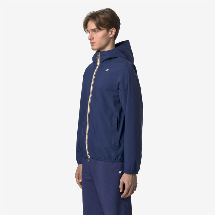 Jack è una giacca corta da uomo ideale per le mezze stagioni e con vestibilità slim, realizzata in tessuto tecnico elasticizzato, che segue i movimenti e protegge dal vento e dalla pioggia fino a 10000 colonne d’acqua. L'interno è foderato con una membrana isolante decorata con lettering K-Way stampato all over in tonalità argento. Le tasche laterali con zip, il cappuccio avvolgente, i polsini e i bordi con inserti elastici sono dettagli funzionali che garantiscono aderenza e una vestibilità comoda e veloce.