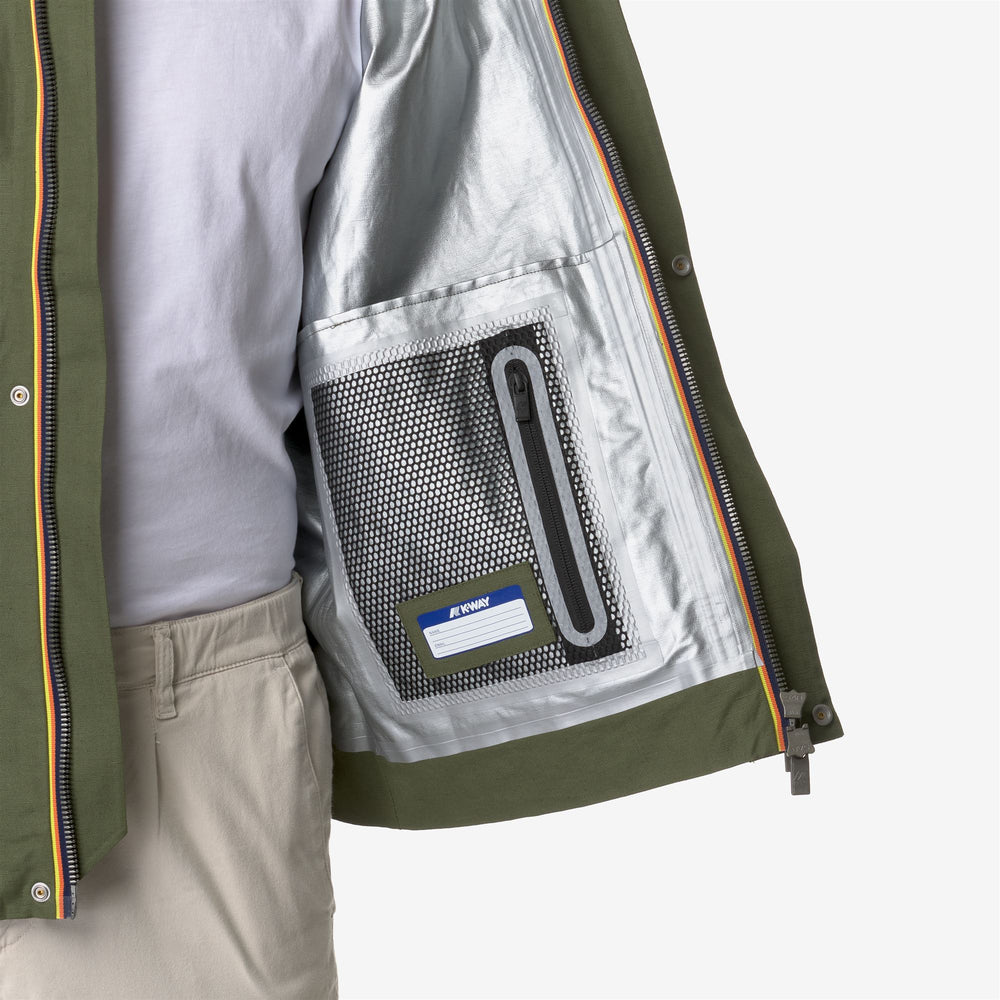 Kaya è una giacca corta da uomo che rappresenta un mix funzionale di materiali naturali e tecnologia K-Way: il tessuto in misto lino dalla mano morbida si coniuga con una funzionale membrana impermeabile all’interno, per moltiplicare le occasioni d’uso del capo. A completare il design del capo, polsini con tape K-Way colorato e colletto ispirati alla camiceria, un cappuccio staccabile, due pratiche tasche con patta e piccoli fori di ventilazione sotto il braccio.