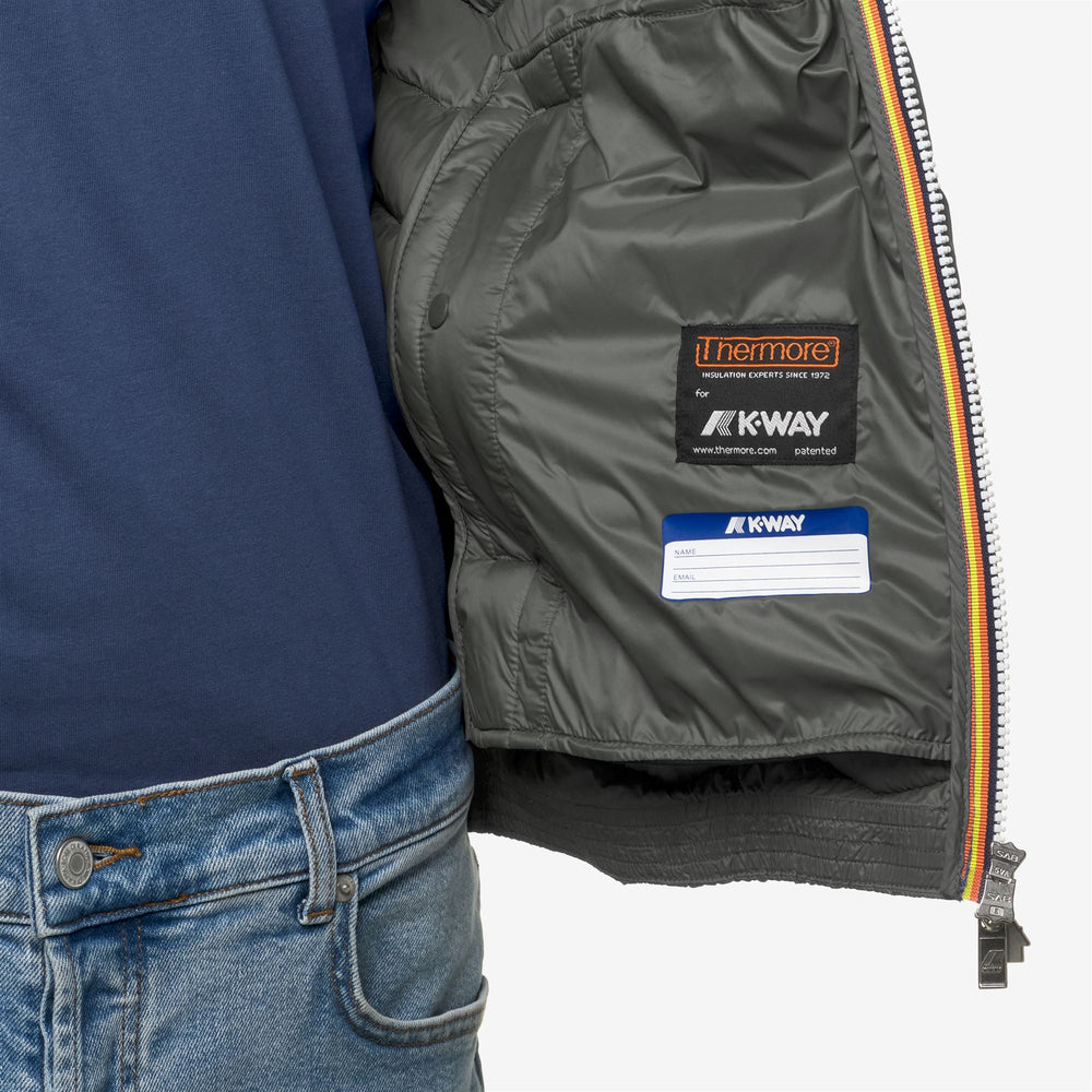 Valentine è la giacca da uomo che unisce la ricerca funzionale e l'impegno K-Way per il rispetto della natura. Realizzato in nylon riciclato che protegge dall'acqua e dal vento, ha una trapuntatura a onde dall'effetto grafico distintivo. L’aspetto innovativo è l’imbottitura in Thermore®, una fibra ottenuta dalla plastica riciclata e altamente isolante.