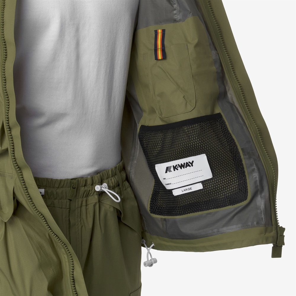 Claudel è una giacca corta dal design sportivo e loose fit, ideale per le mezze stagioni, realizzata in tessuto tecnico a 3 strati, antivento e antipioggia fino a 5000 colonne d’acqua e confortevole a contatto con la pelle. La giacca si caratterizza per lo stile utility: costruzione full zip con cappuccio avvolgente, polsini elasticizzati e orlo inferiore regolabile con coulisse, 4 grandi tasche con patta frontali, una tasca sulla manica e una posteriore che rende il capo impacchettabile. Amiable è il progetto K-Way che coniuga funzionalità e rispetto per l’ambiente. Questo capo è realizzato in nylon riciclato e riciclabile al 100% ed è rifinito con cuciture termonastrate antivento, anch'esse realizzate con materiali di scarto.