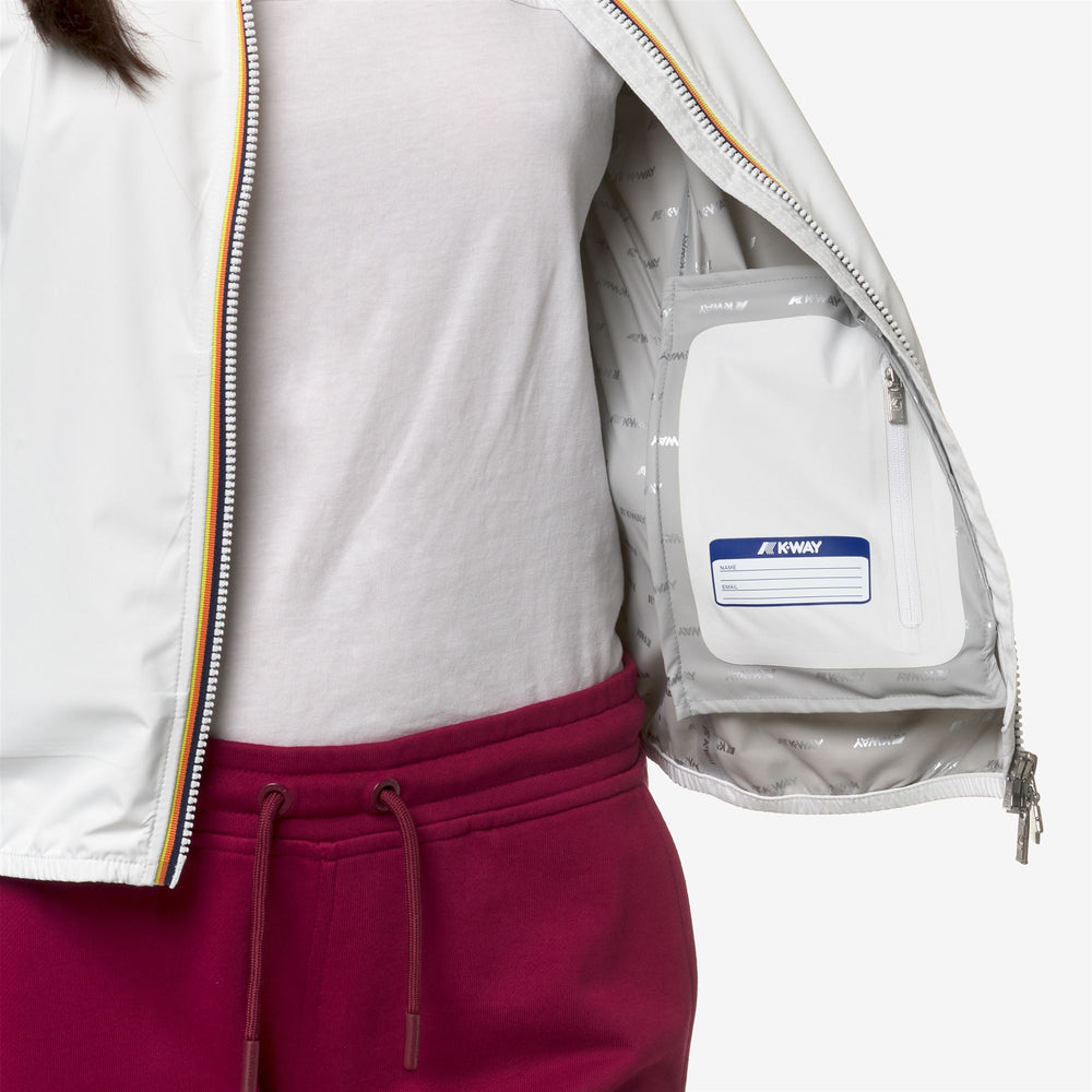 Lily è una giacca corta da donna ideale per le mezze stagioni e con vestibilità slim, realizzata in tessuto tecnico elasticizzato, che segue i movimenti e protegge dal vento e dalla pioggia fino a 10000 colonne d’acqua. L'interno è foderato con una membrana isolante decorata con lettering K-Way stampato all over in tonalità argento. Le tasche laterali con zip, il cappuccio avvolgente, i polsini e i bordi elastici sono dettagli funzionali che garantiscono aderenza e una vestibilità comoda e veloce.