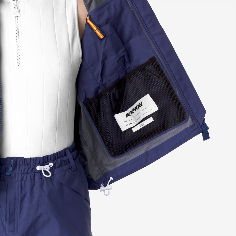Soisir è una giacca corta da donna dal design boxy loose fit con maniche raglan, ideale per le mezze stagioni, realizzata in tessuto tecnico a 3 strati, antivento e antipioggia fino a 5000 colonne d’acqua e confortevole a contatto con la pelle. La giacca si caratterizza per lo stile utility: costruzione full zip con colletto, polsini elasticizzati e orlo inferiore regolabile con coulisse, due grandi tasche con patta frontali e una posteriore che rende il capo impacchettabile. Amiable è il progetto K-Way che coniuga funzionalità e rispetto per l’ambiente. Questo capo è realizzato in nylon riciclato e riciclabile al 100% ed è rifinito con cuciture termonastrate antivento, anch'esse realizzate con materiali di scarto.