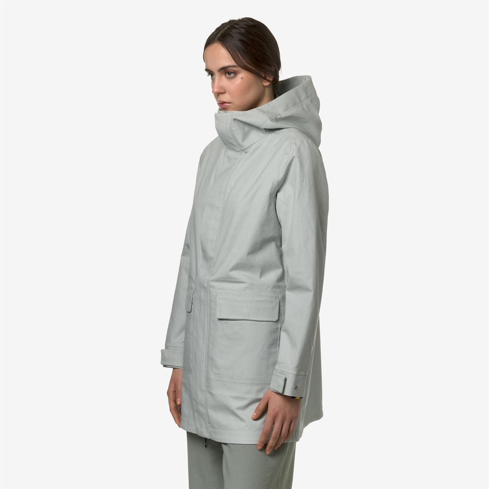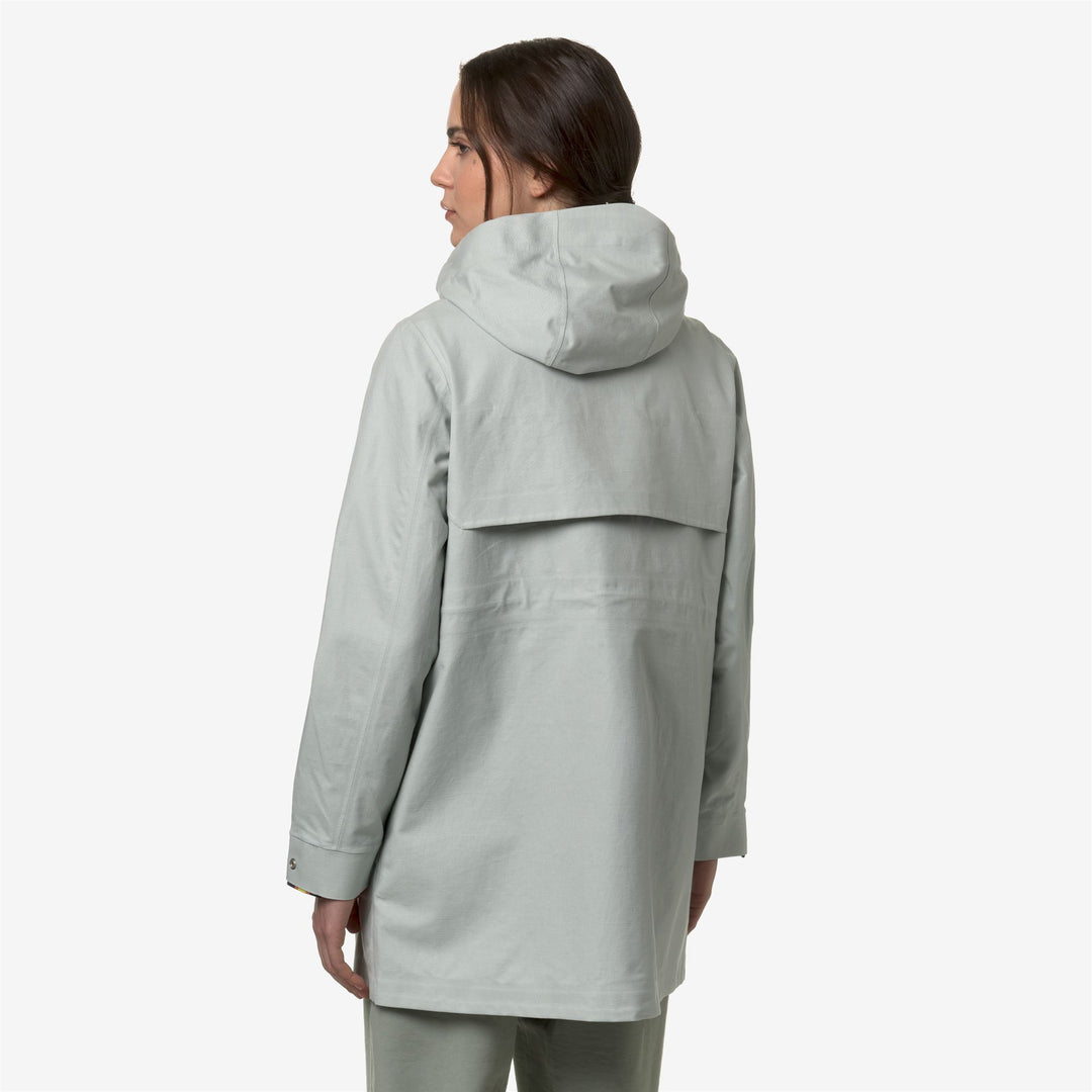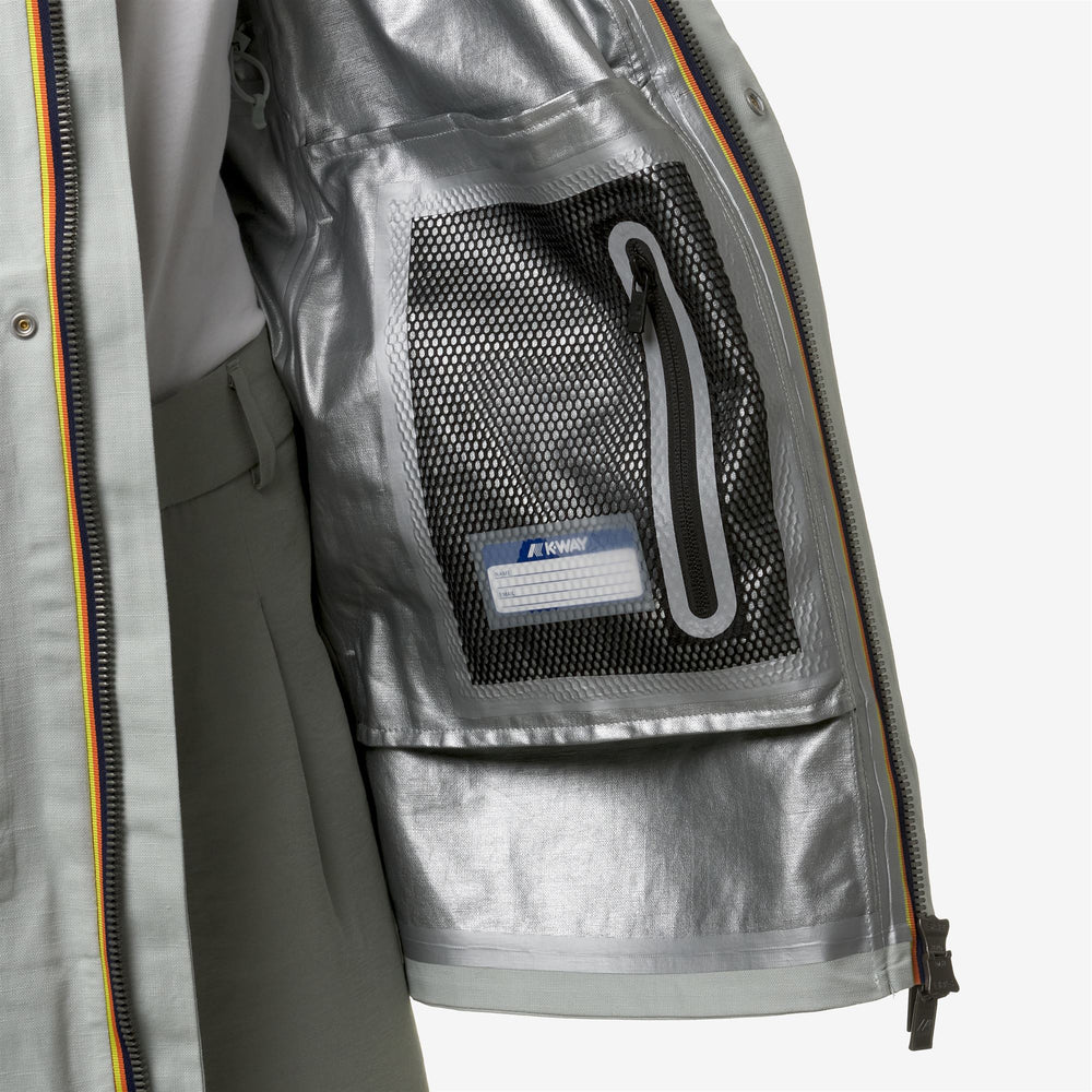 Thersa è una giacca da donna di lunghezza a tre quarti che rappresenta un mix funzionale di materiali naturali e tecnologia K-Way: il tessuto in misto lino dalla mano morbida si coniuga con una funzionale membrana impermeabile all’interno, per moltiplicare le occasioni d’uso del capo. A completare il design del capo, polsini regolabili, un cappuccio fisso, due pratiche tasche con patta e piccoli fori di ventilazione sotto il braccio.