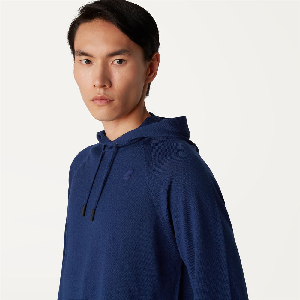 Pullover Uomo in Lana Merino Blu Profondo con Cappuccio Regolabile main