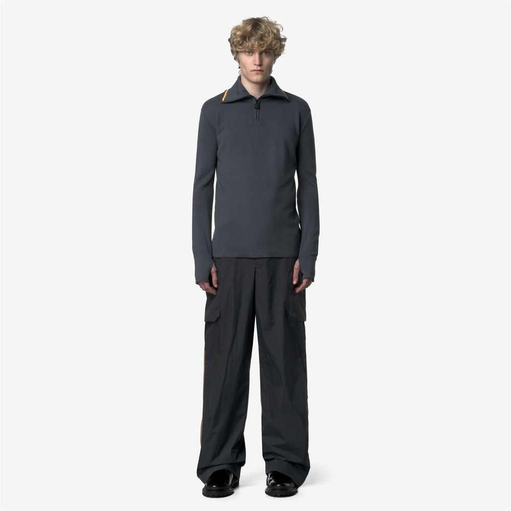 Polom è un pullover da uomo a maniche lunghe. Ideale per le mezze stagioni, è realizzato in morbido filato di cotone egiziano anti-pilling e presenta collo alto con chiusura half-zip dalla doppia vestibilità: ripiegato a polo, o alto e avvolgente. Quando rigirato, il bordo del colletto svela un profilo nei colori signature del tape K-Way®.