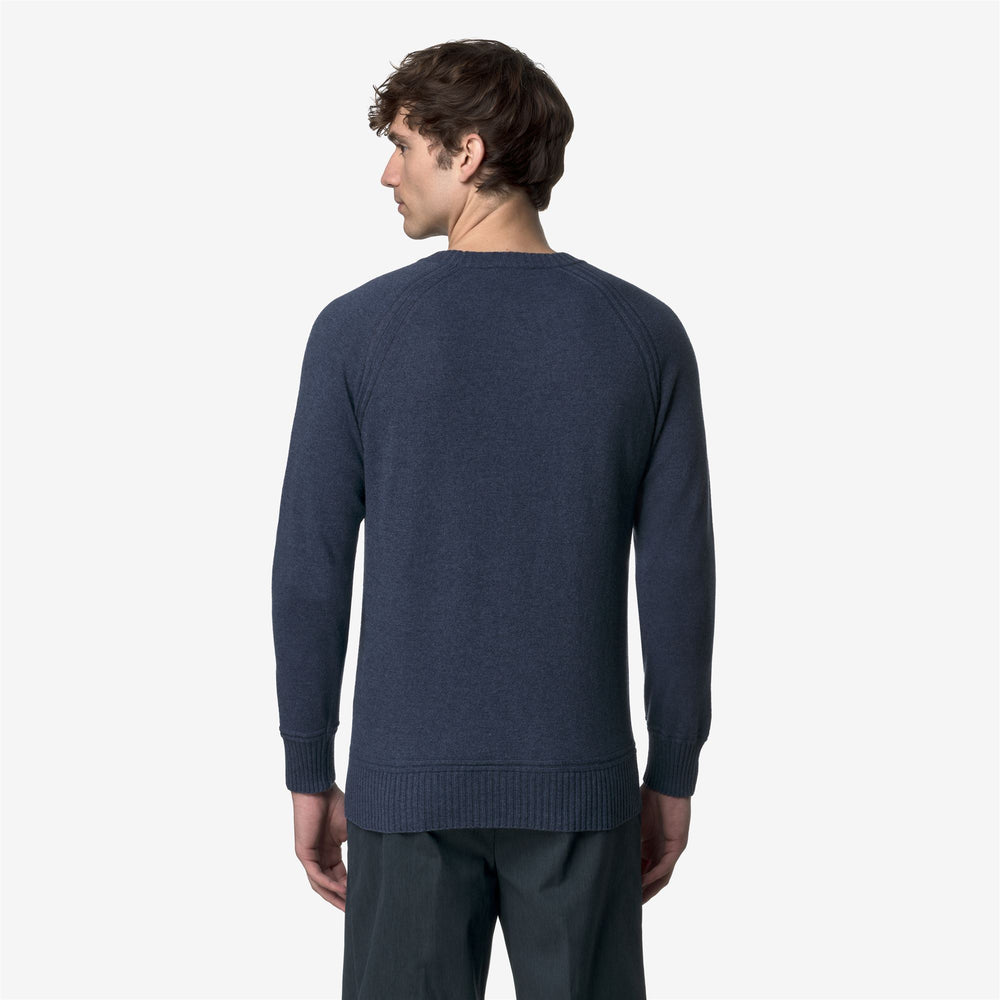 Maglione girocollo in lana e cashmere blu da uomo main