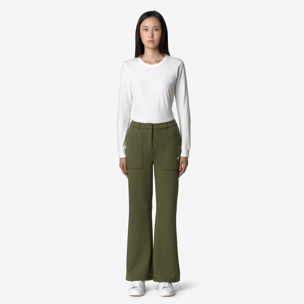 I pantaloni da donna Janinne sono pensati per le occasioni leisure e lo sport. Il modello è realizzato in interlock tecnico dalla mano liscia e morbida, un materiale caldo e flessibile che offre comfort e libertà di movimento durante l’attività, e si caratterizza per il taglio flare, una linea che esalta la silhouette femminile con gamba aderente che si allarga sul fondo, con coulisse regolabile in vita. Con questo capo è possibile comporre un completo athleisure dal gusto pulito ed essenziale.