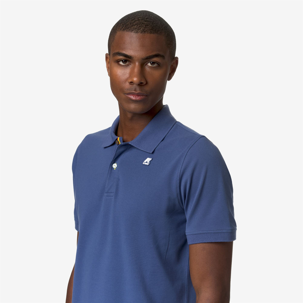 Vinnie è la polo in piquet di cotone elasticizzato con il collo e i bordi delle maniche dal colore a contrasto e l'interno della chiusura decorato con il classico tape K-Way. La linea slim e contemporanea è rifinita con il logo sul petto.