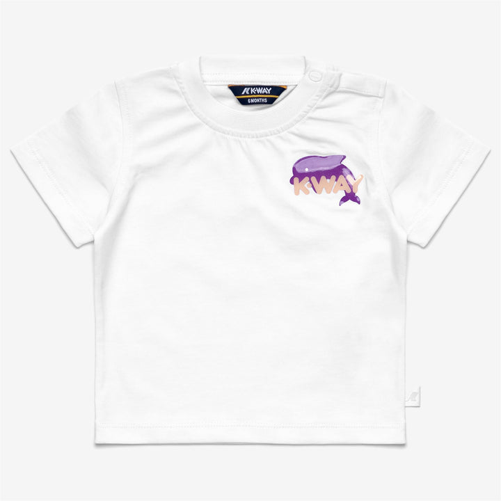 Pete è una t-shirt girocollo per bambini realizzata in morbido jersey di puro cotone con il logo K-Way e un delfino illustrato stampati sul petto. Il suo design versatile con maniche corte assicura un’ottima libertà di movimento.