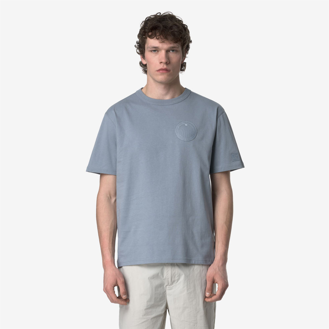 T-Shirt Casual Uomo Grigio Blu con Applicazioni Logo Stampate main