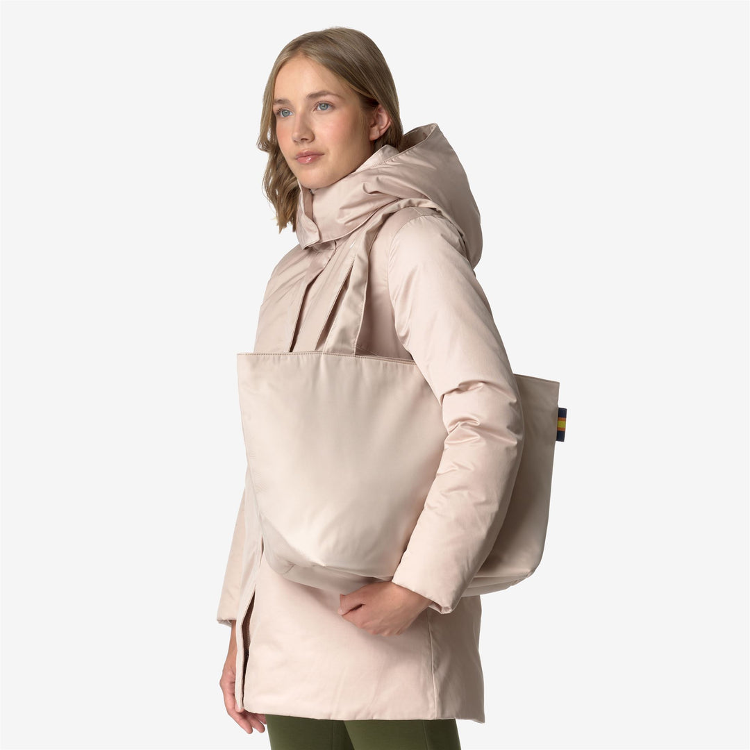 Clere is a shopping bag with handles featuring a clean and versatile look, designed to add a touch of essential style and functionality to everyday outfits. Entirely crafted from twill fabric, it has good water resistance and is suitable for an on-the-go use, both in the city and during leisure time. This tote bag features a zip closure, 2 internal pockets, and a practical keychain hook. The multicolor K-Way tape detail is featured on the side.
