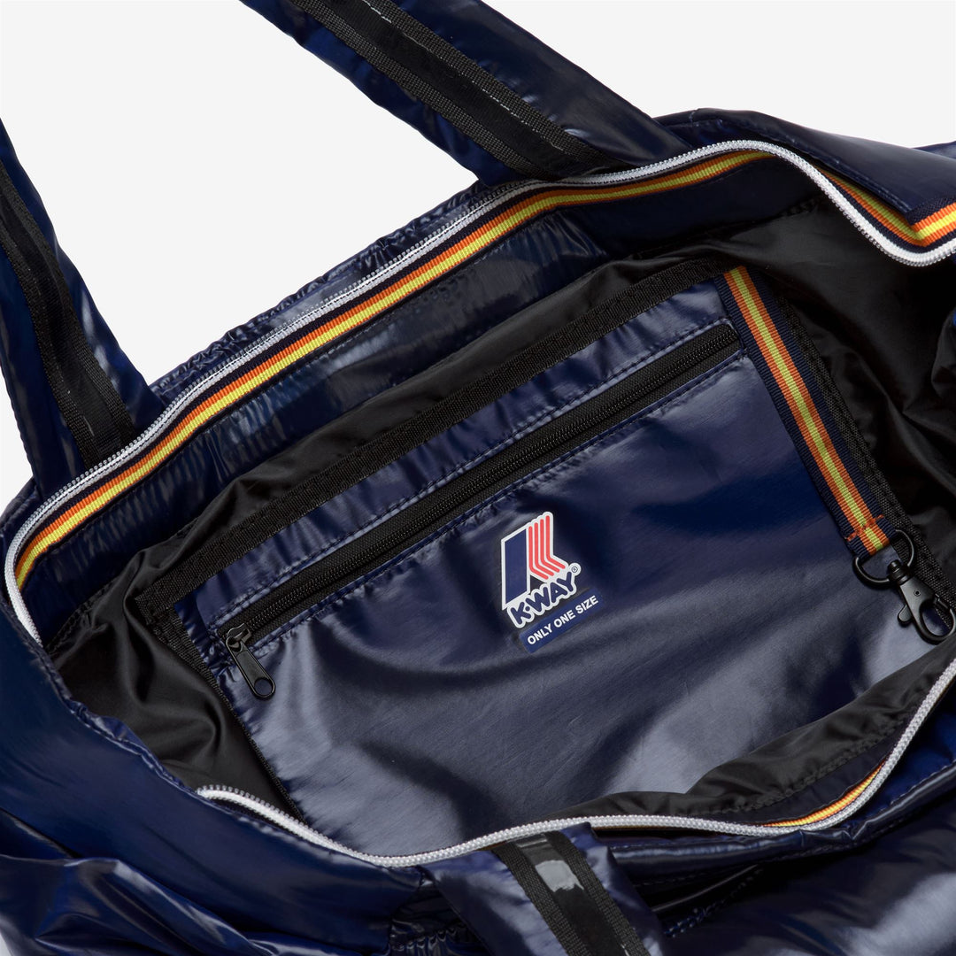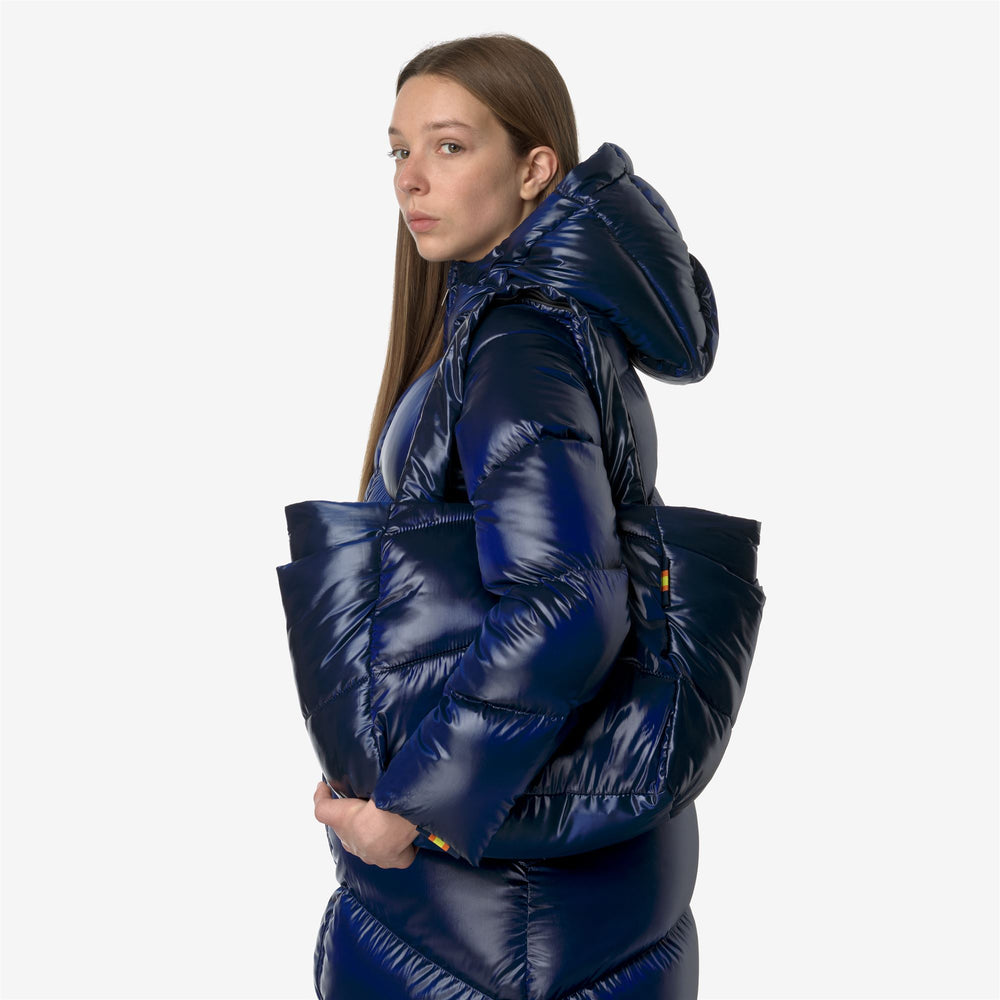 Nin is a shopping bag with handles, boasting a puffy contemporary style, designed to add a lifestyle touch to the city looks. Crafted from iridescent nylon with internal padding, this quilted tote bag, soft in appearance, is characterized by padded handles, a zip closure, an internal pocket, and a practical keychain hook.
