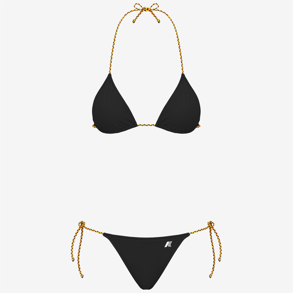 The Etre bikini flaunts an ultra-feminine silhouette. Both the triangle top and brief bottoms fasten with braided ties in K-Way signature colours. It is made from quick-dry technical fabric with an inner lining and white logo printed on the side.